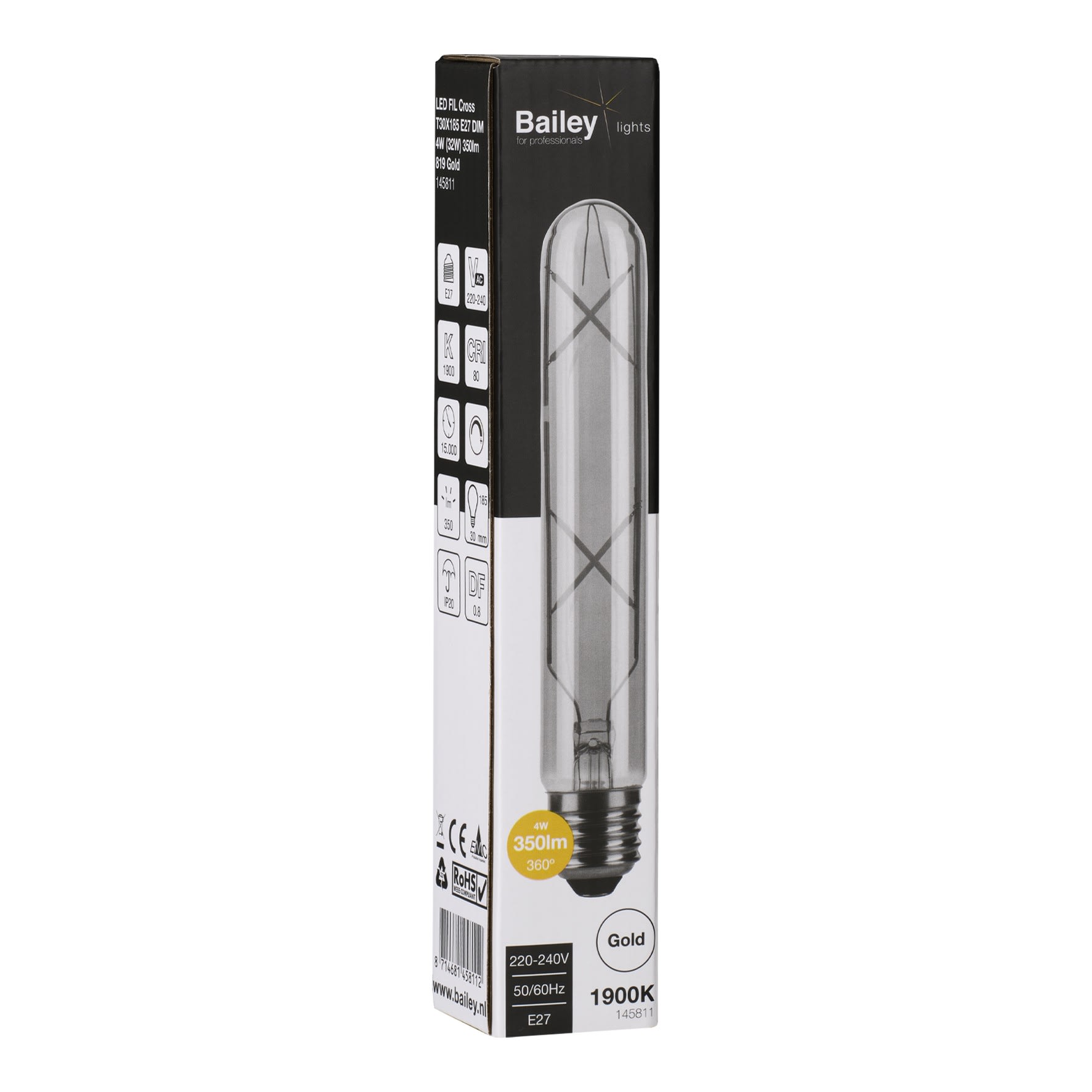 Bailey - LED Filament Cross T30X185mm E27 4W (32W) 350lm 1900K Or Gradable 230V-240V - 145811