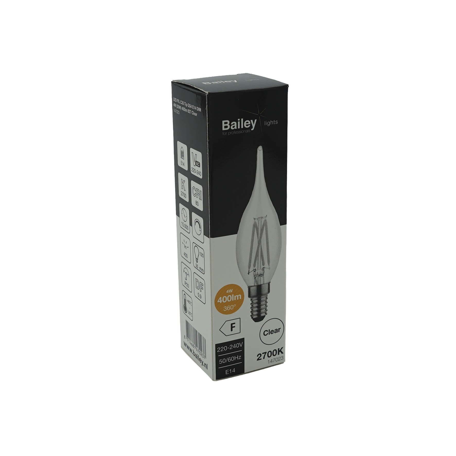 Bailey - LED Filament Gradable Flamme Tip C35 E14 4W 2700K Clair 400lm - 147023