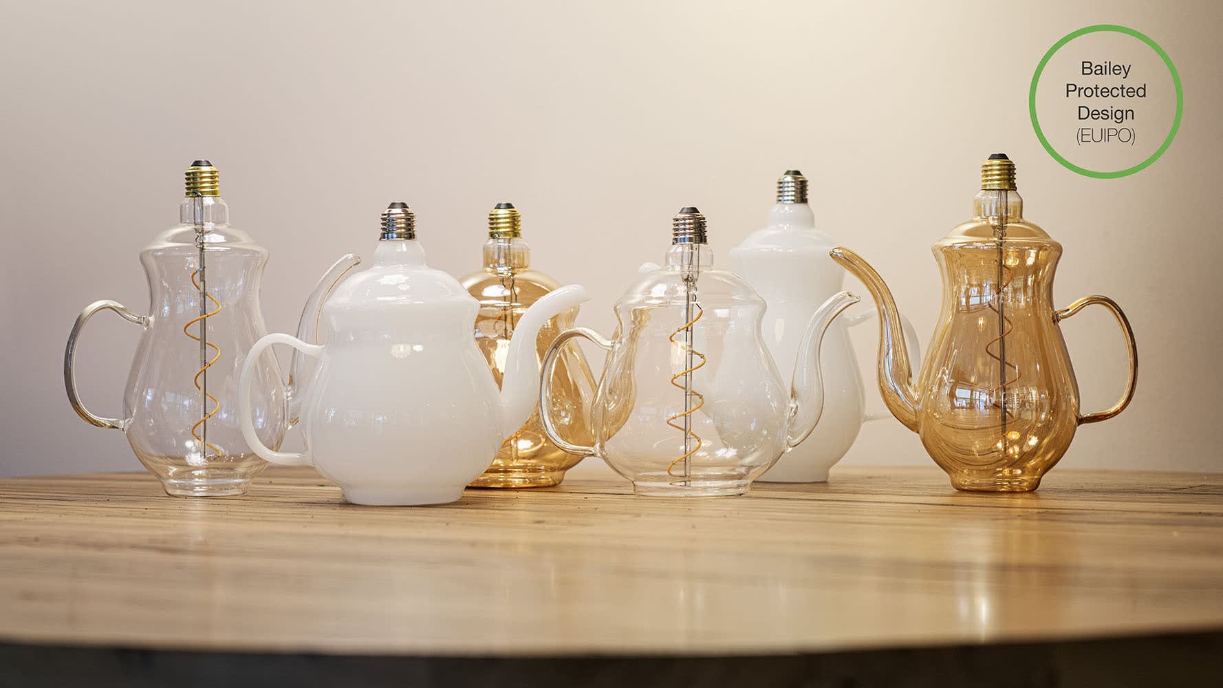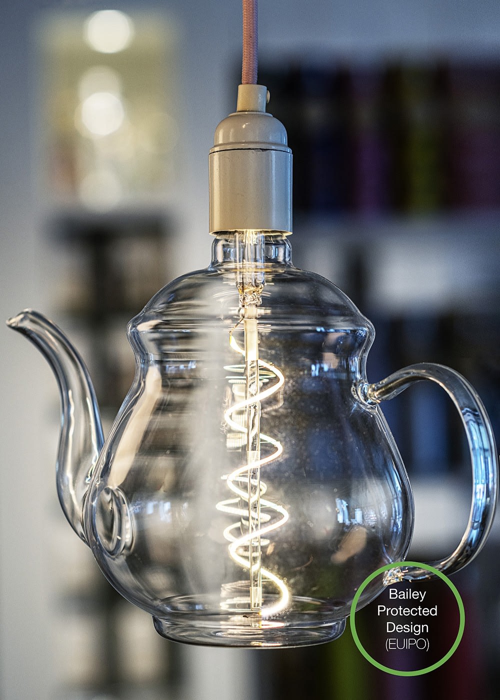 Avec le Teapot Earl (qu'est-ce qui est dans un nom?), Bailey a quelque chose d'unique en interne. Ce sont des lampes à incandescence LED selon le principe Spiraled® (filament torsadé, dimmable 2200K) en forme de théière. Ce modèle ne doit bien sûr pas