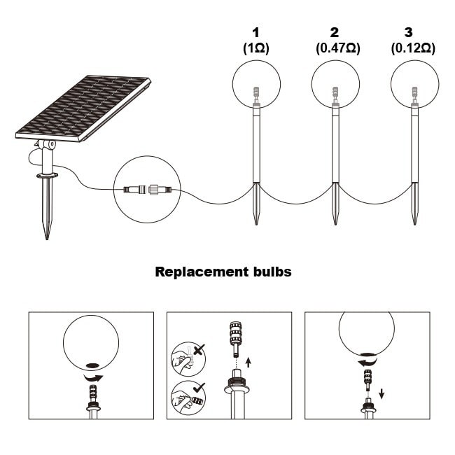 BAI Modules LED (3pcs) 2500K 0.12O/0.47O/1O 150lm de rechange pour prolonger la durée de vie des Solaire Lampes de jardin Party Balls ref 147121