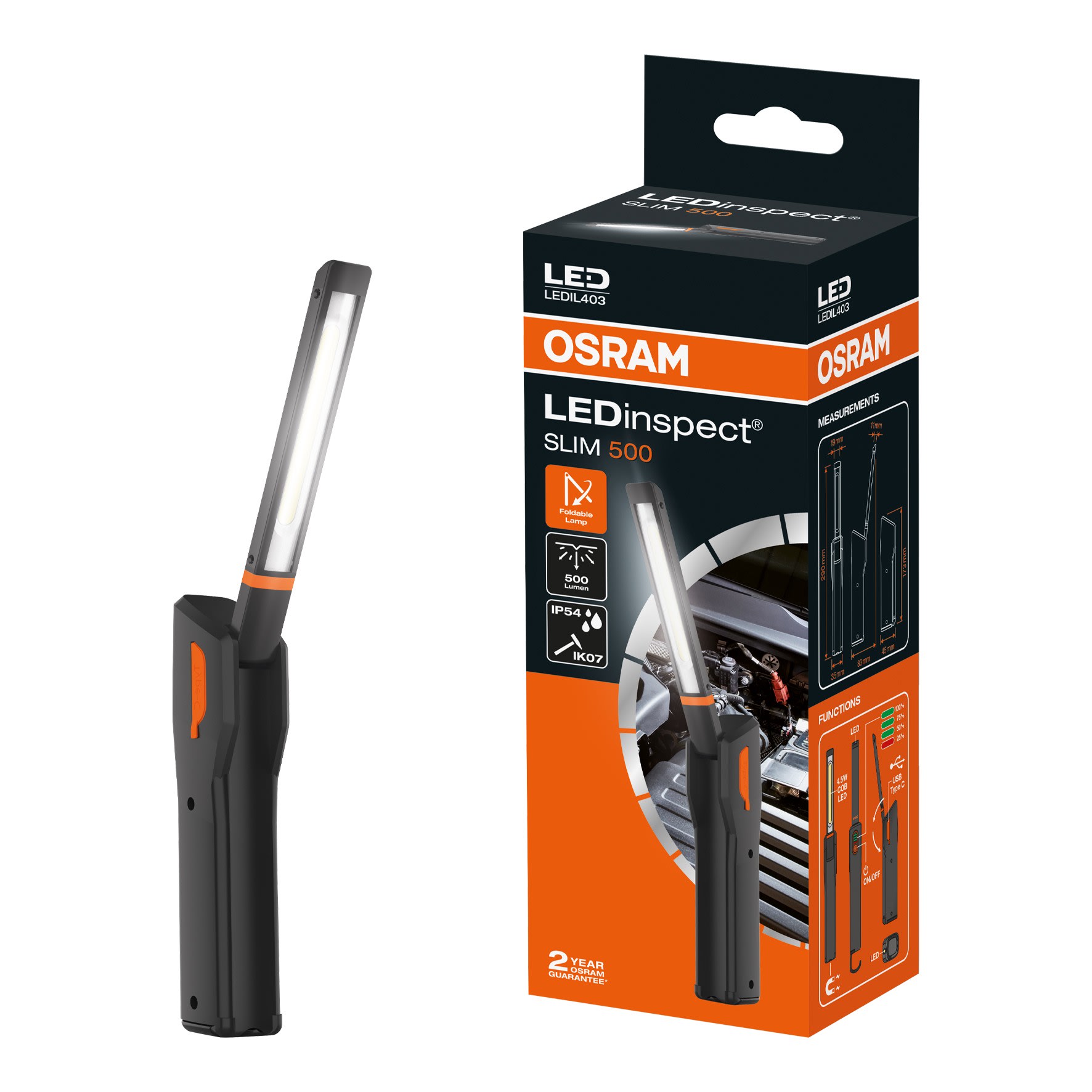 Bailey - OSR LED Lampe Torche d'inspection Slim 500 LEDIL403 327X37X41mm 6000K 500/250lm - 144908