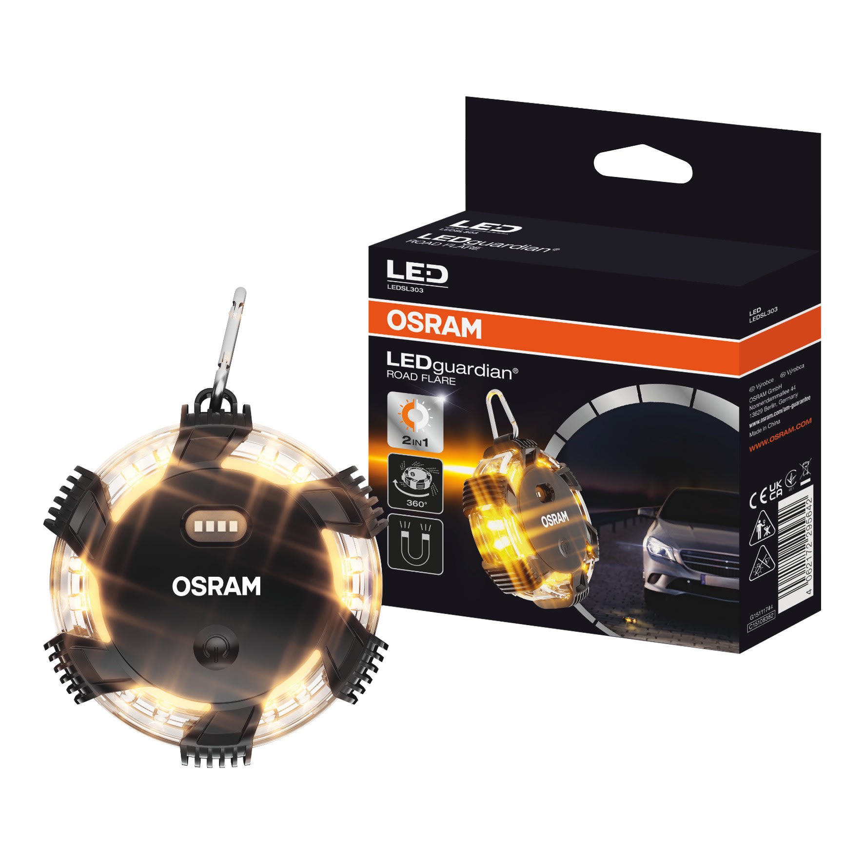 LEDguardian ROAD FLARE est un voyant LED compact pour les situations d'urgence sur la route, ainsi que pour les petits travaux d'inspection sur votre voiture. Équipée de 16 LED longue durée, la lampe offre trois modes de fonctionnement différents: