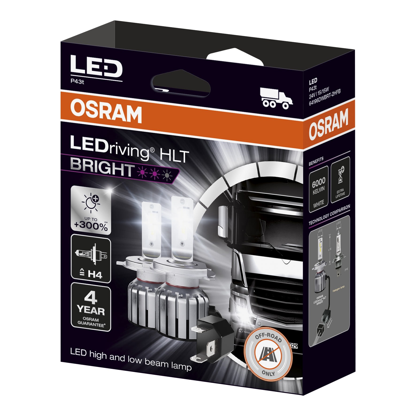 Bailey - OSR LEDriving 64196DWBRT-2HFB H4 P43T 14X80.2mm 24V 15/15W 1200/1500lm 6000K 2pc - 146517