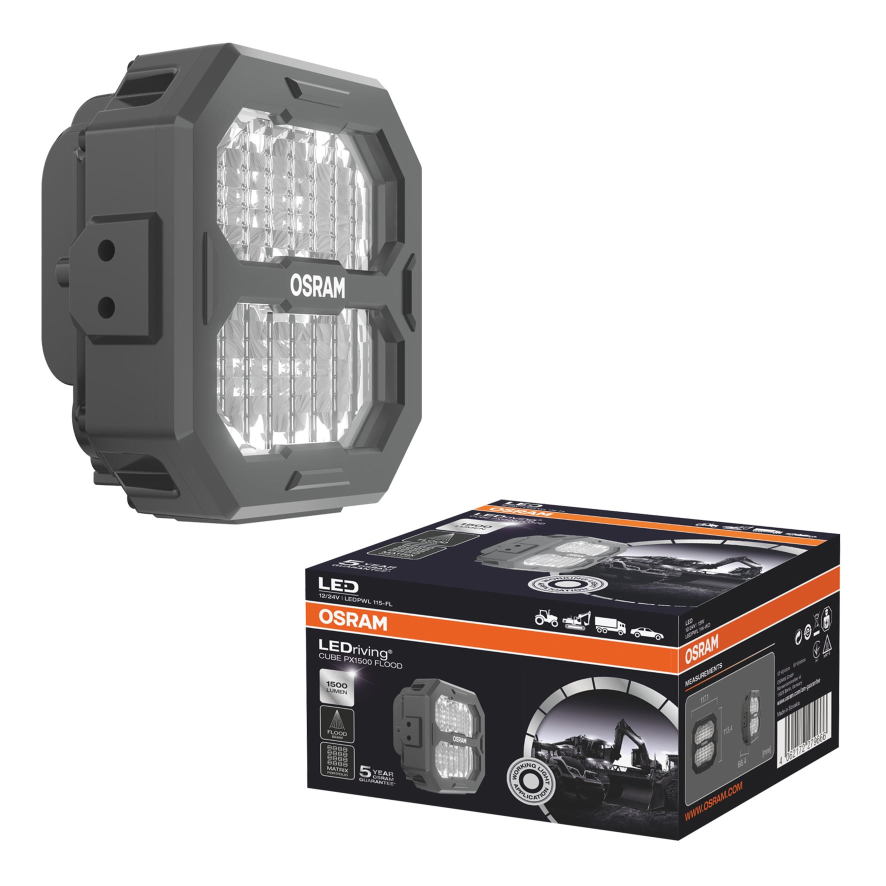 Bailey - OSR LEDriving CUBE PX1500 Flood LEDPWL 115 12/24V 15W 6000K 1500lm 117.1x68.4x11 - 145845