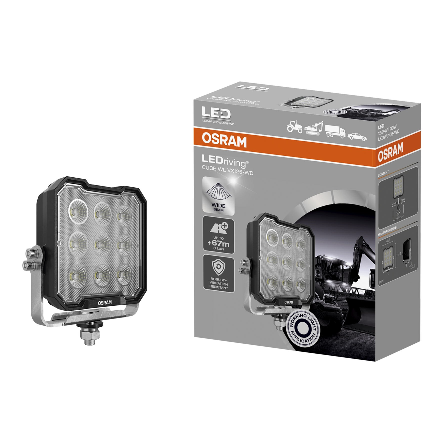 Grâce au projecteur pour véhicules LEDriving Cube WL VX125-WD, vous obtenez un éclairage impressionnant sur les chantiers, dans les carrières, champs, sentiers forestiers, en dehors des voies de circulations publiques éclairées. Ce projecteur de travail