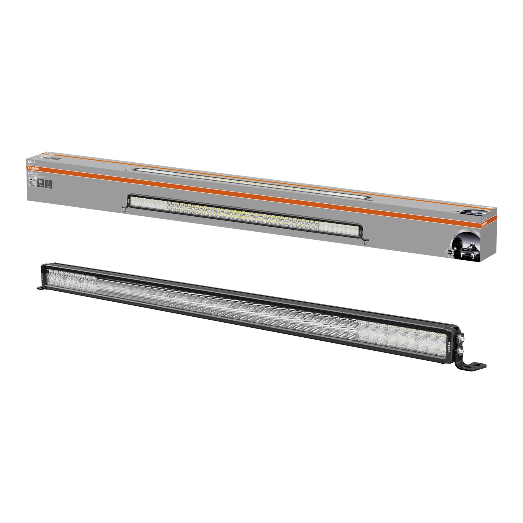 Grâce au projecteur linéaire pour véhicules OSRAM LEDriving Lightbar VX1250-CB DR SM, on atteint une visibilité considérable de nuit sur les routes, sentiers forestiers, et en tout-terrain. Avec ses 45 LED haute puissance et son optique spécialement