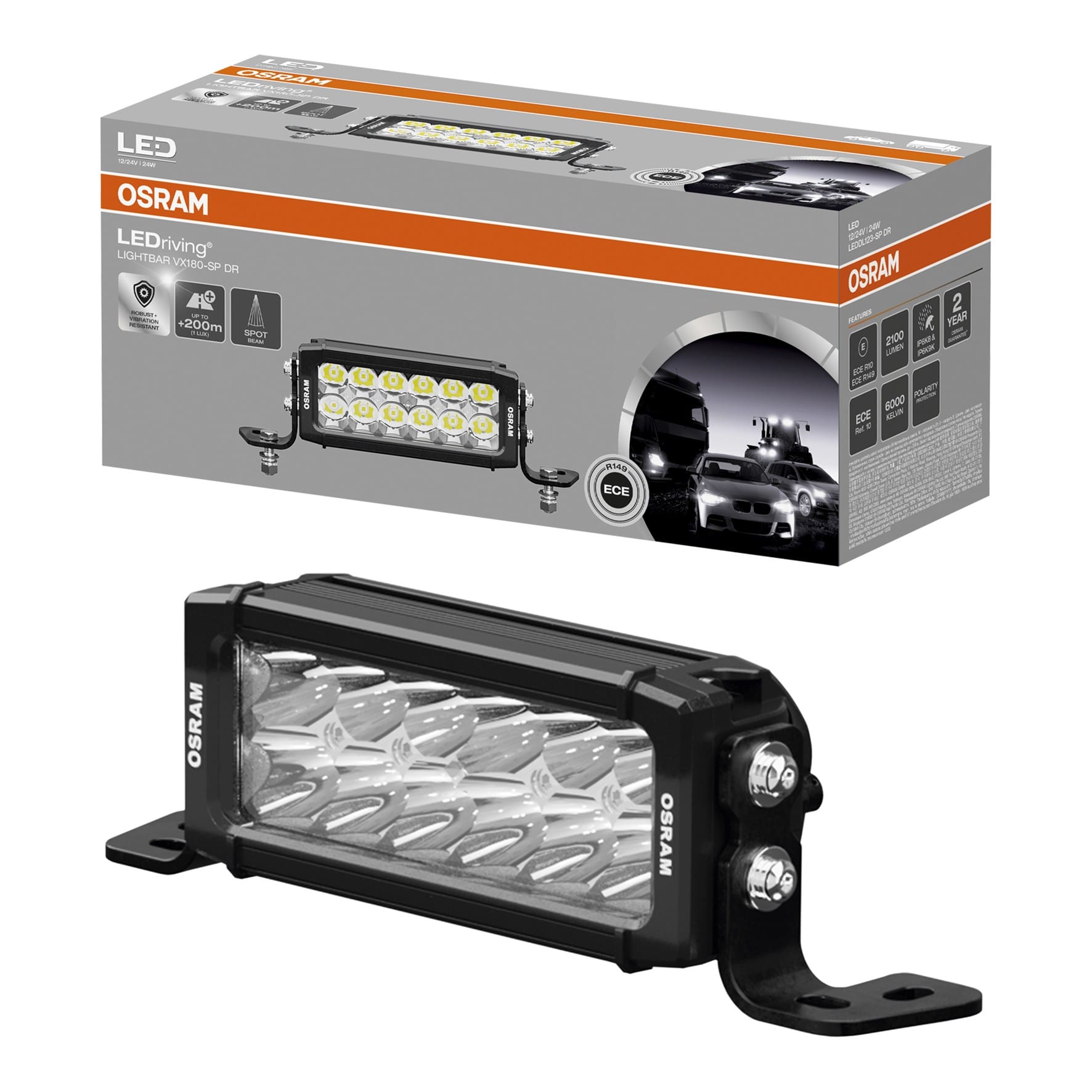 Grâce au projecteur linéaire pour véhicules OSRAM LEDriving Lightbar VX180-SP DR, on atteint une visibilité considérable de nuit sur les routes, sentiers forestiers, et en tout-terrain. Avec ses 12 LED haute puissance et son optique spécialement