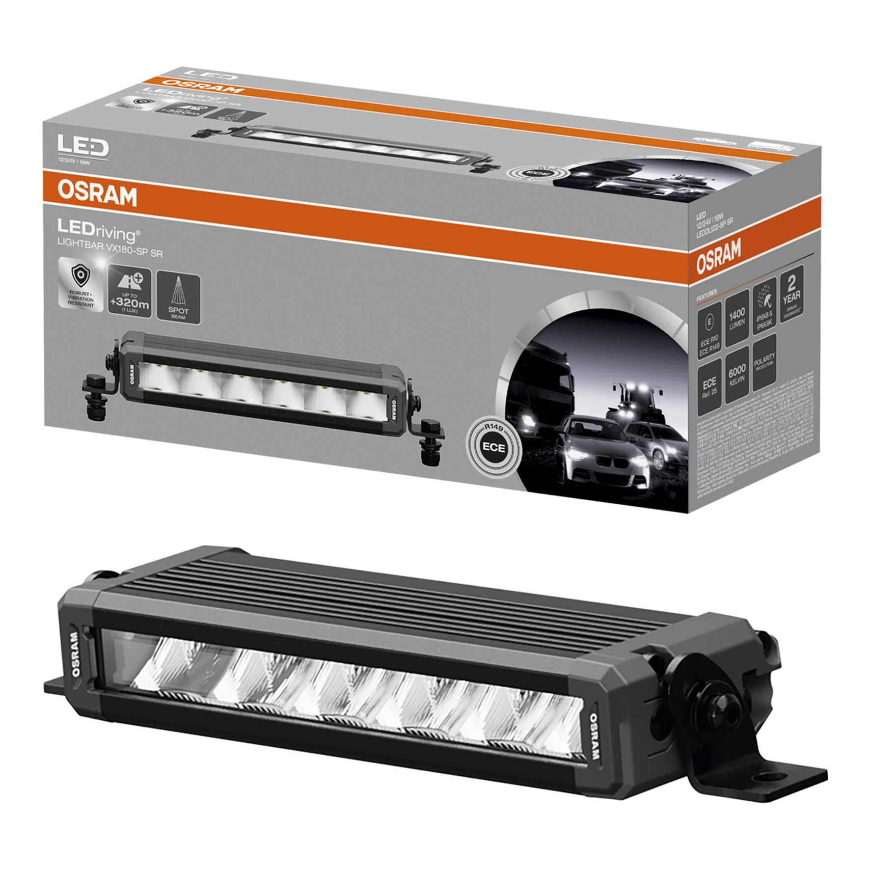 Grâce au projecteur linéaire pour véhicules OSRAM LEDriving Lightbar VX180-SP SR, on atteint une visibilité considérable de nuit sur les routes, sentiers forestiers, et en tout-terrain. Avec ses 6 LED haute puissance et son optique spécialement étudiée,