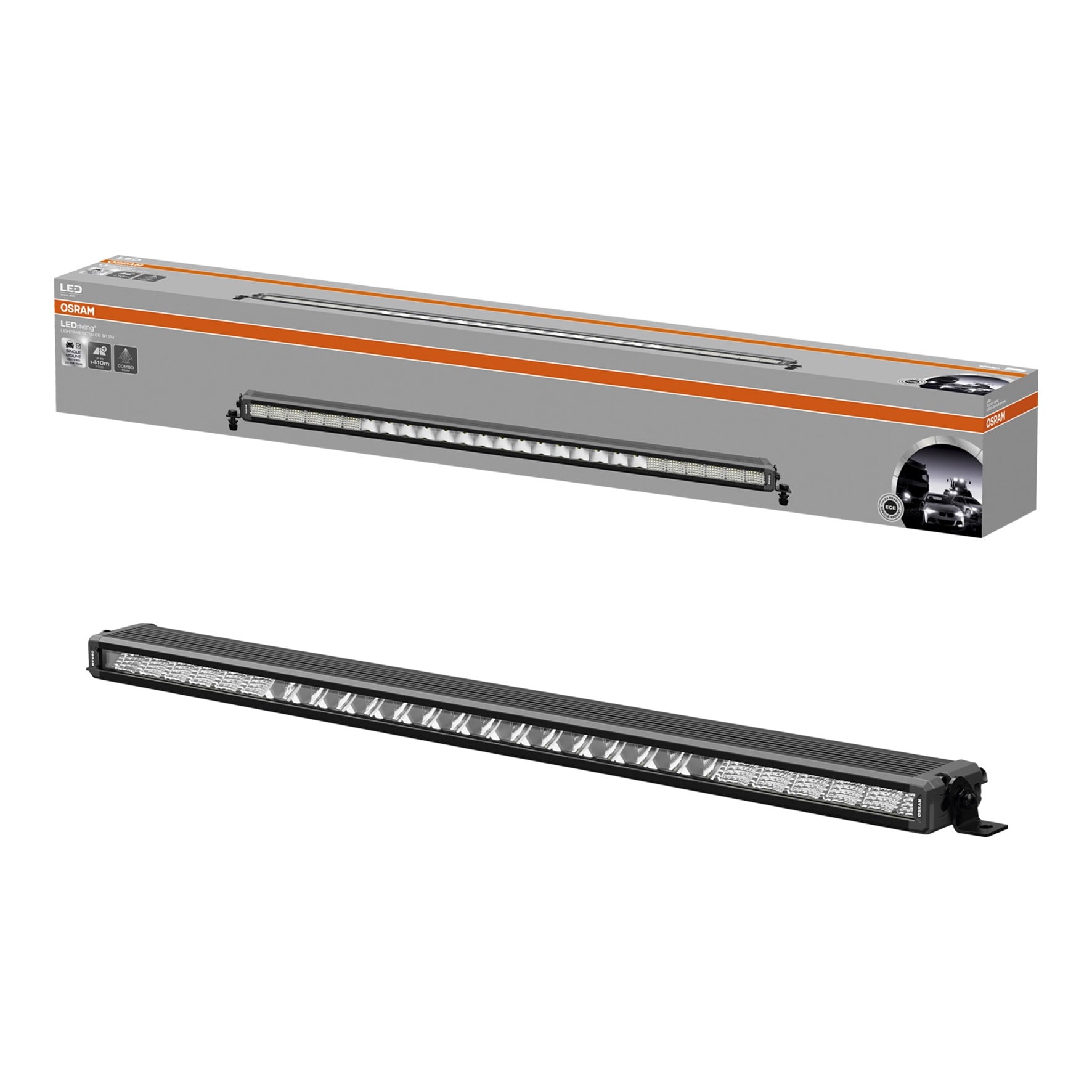 Grâce au projecteur linéaire pour véhicules OSRAM LEDriving Lightbar VX750-CB SR SM, on atteint une visibilité considérable de nuit sur les routes, sentiers forestiers, et en tout-terrain. Avec ses 27 LED haute puissance et son optique spécialement