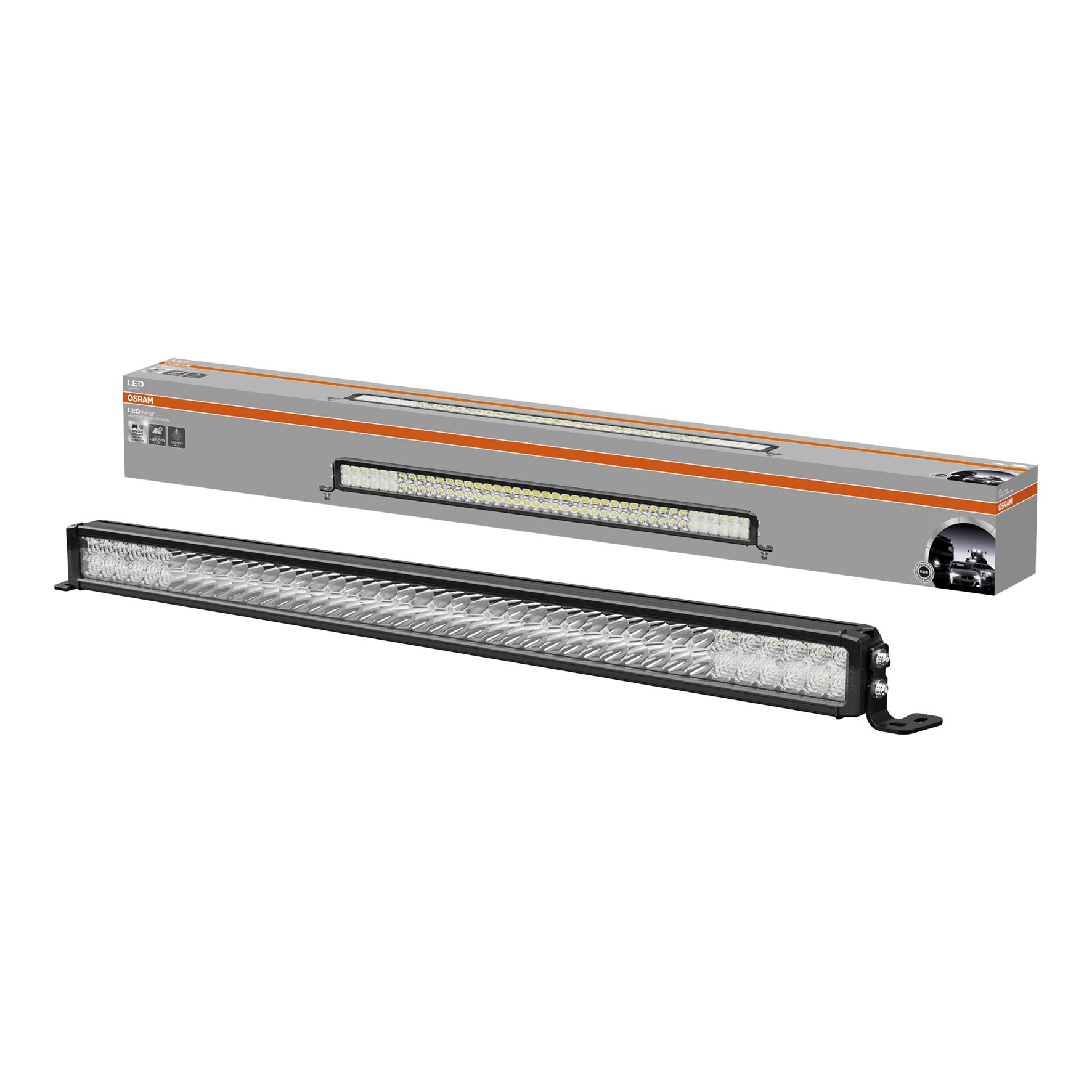 Grâce au projecteur linéaire pour véhicules OSRAM LEDriving Lightbar VX1000-CB DR SM, on atteint une visibilité considérable de nuit sur les routes, sentiers forestiers, et en tout-terrain. Avec ses 84 LED haute puissance et son optique spécialement