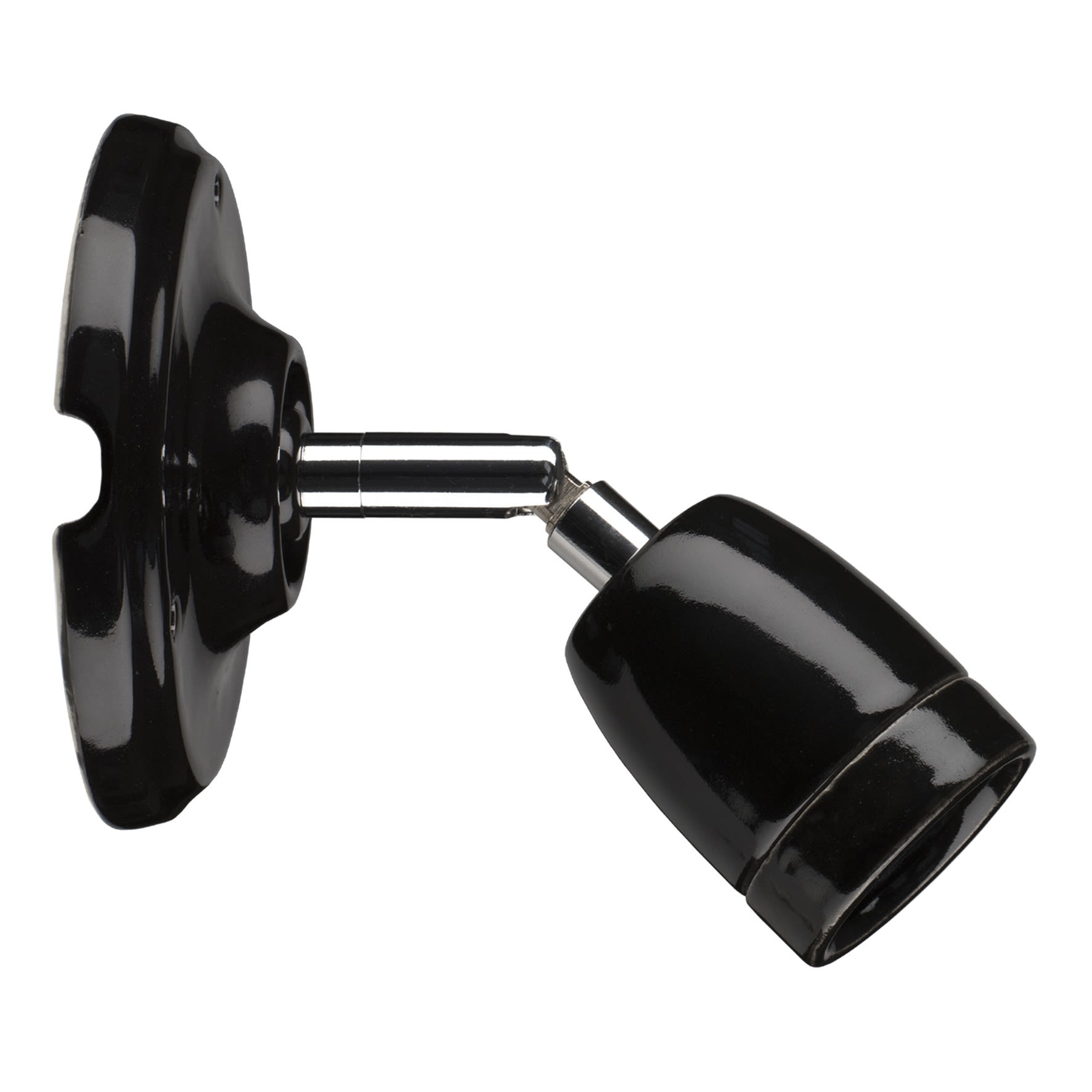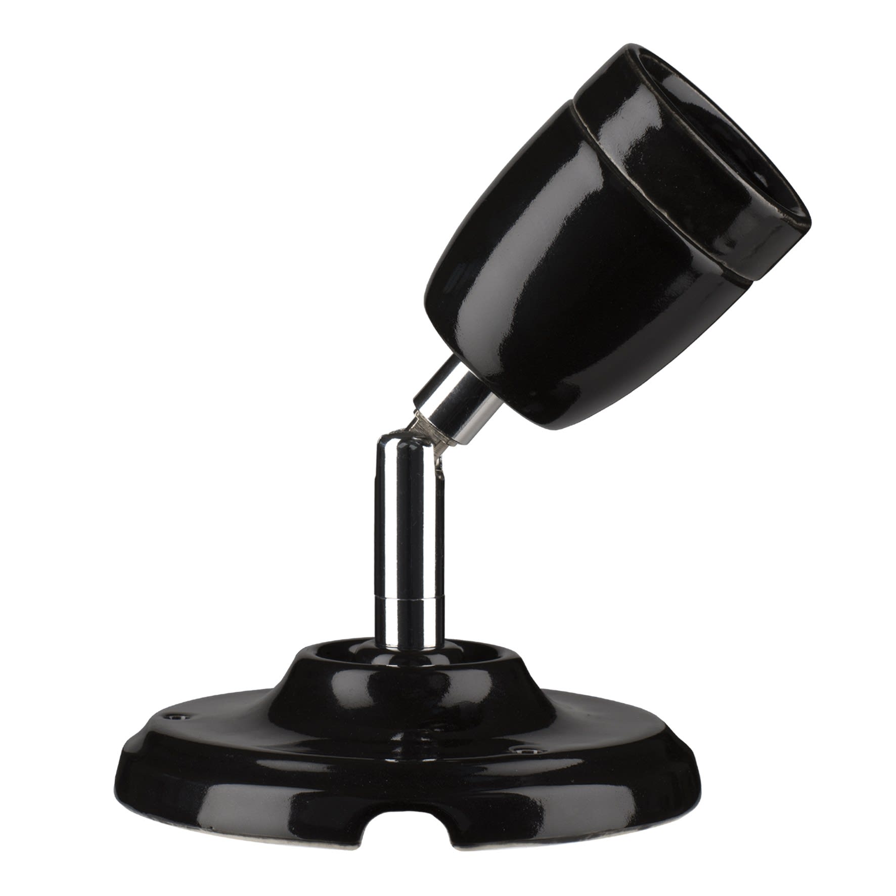 BAI Plafonnier / Applique murale en Porcelaine L E27 Noire 105x146mm avec bras orientable - pour câble 2x0.75mm² à 2.5mm² - Max 60W