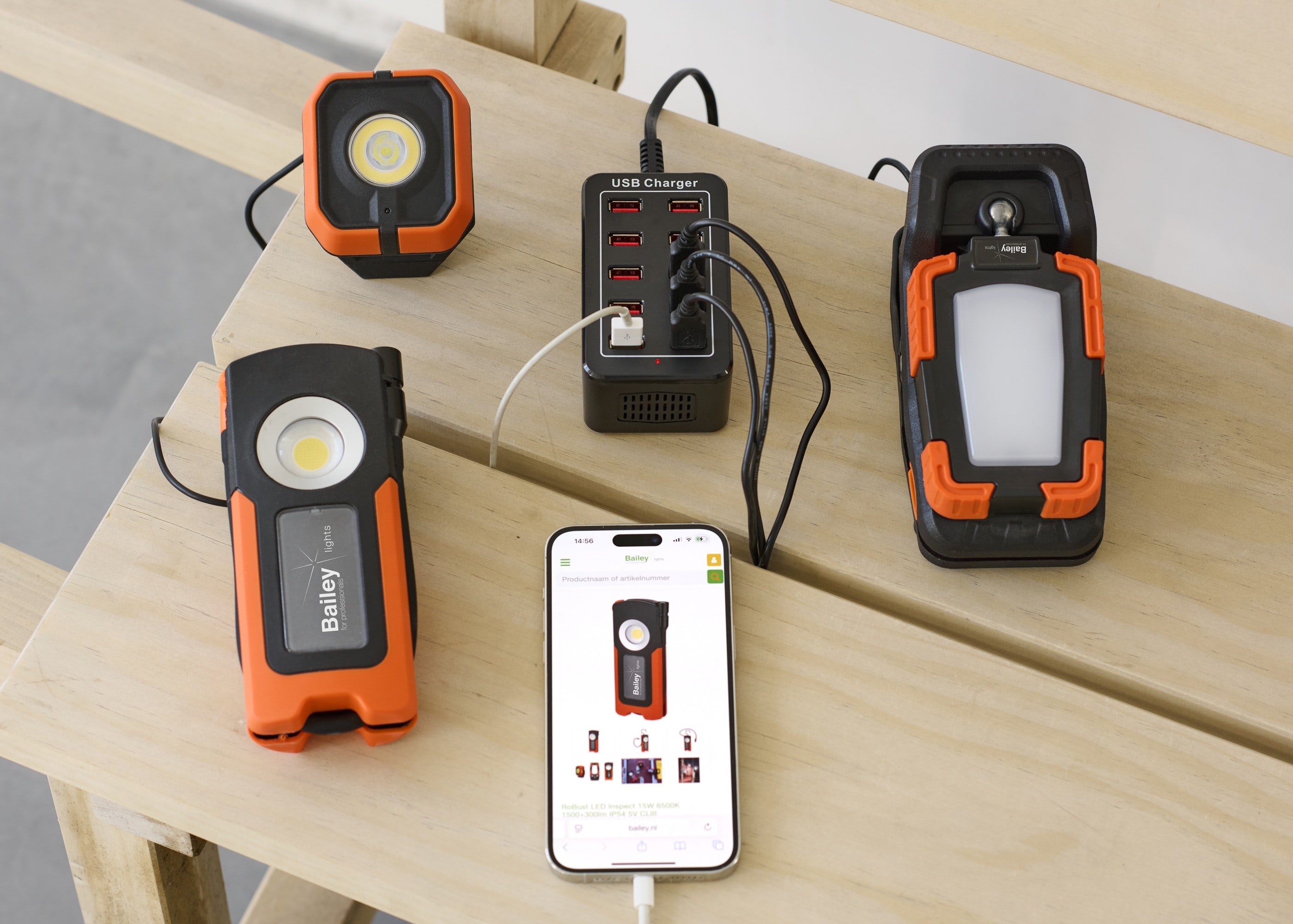 Bailey - RoBust LED Multi 20W 6500K IP54 IK08 1500lm sur clip/pince - Rechargeable - 360° - 146772