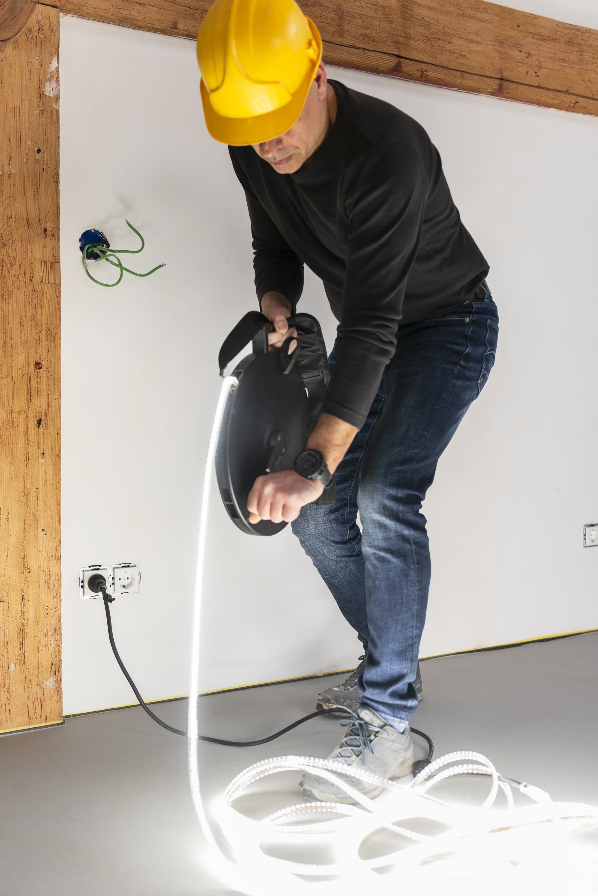 Le Robust LED Rope Roll2Go fait partie de la gamme d'éclairage de chantier Bailey RoBust. C'est un solide ruban LED de 10 mètres sur dérouleur portatif destiné à éclairer les zones de travaux, espaces étroits (greniers, combles) et les allées de