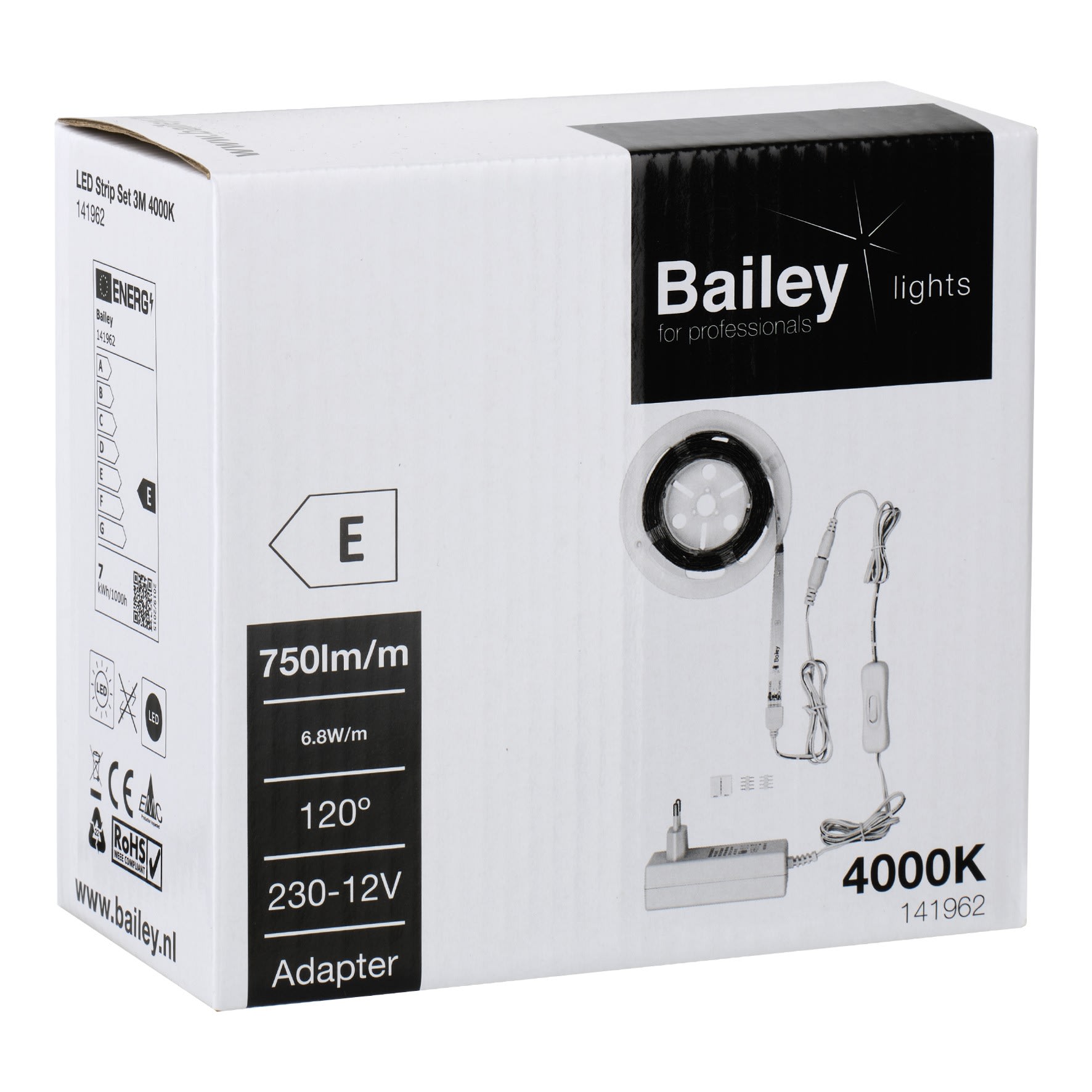 Bailey - Ruban LED Set Basic 3M 4000K 6.8W/m IP20 Plug & Play 1.8m câble + inter. - 141962