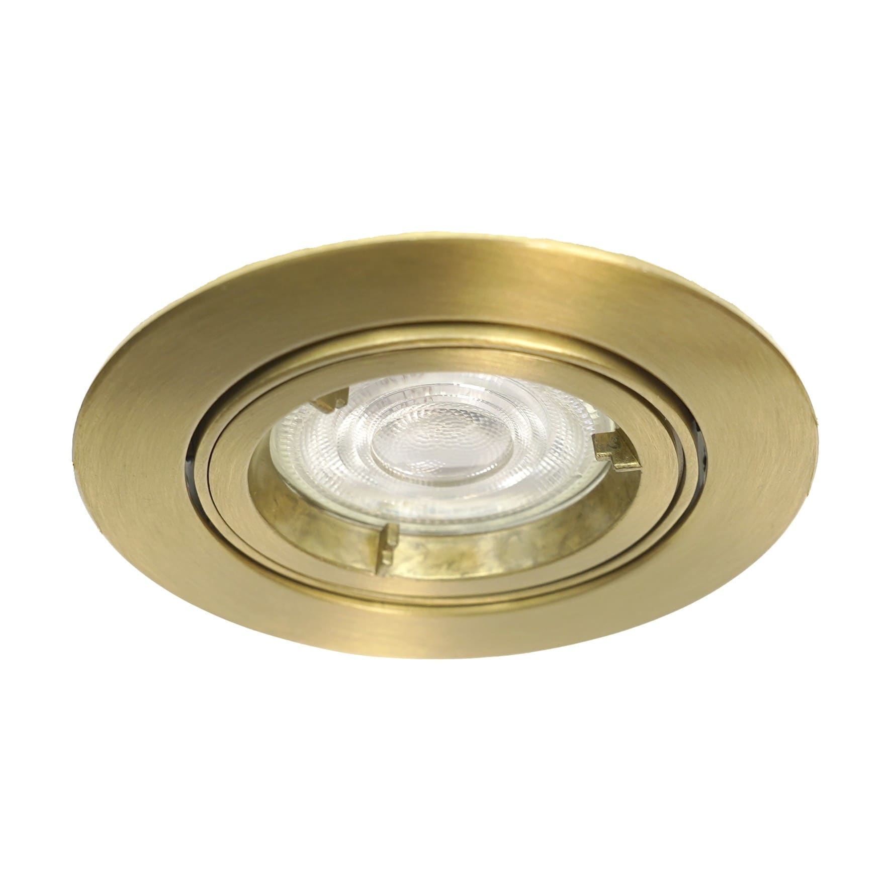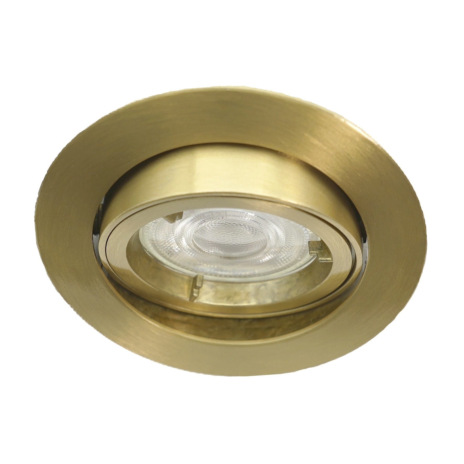 BAI Spot Encastré Orientable GU10 230V Laiton doré Brossé 93x100mm 1/4 de Tour Classe 2 Downlight Kit Diamètre d'encastrement 80mm. Ensemble Collerette + douille GU10 + patère
