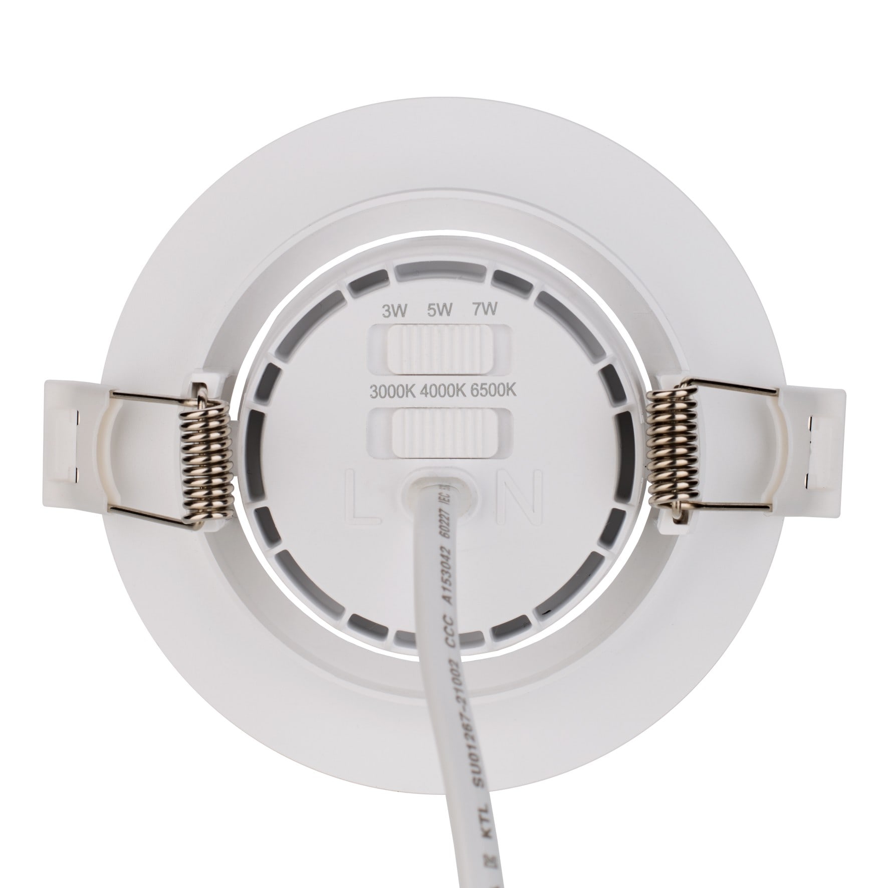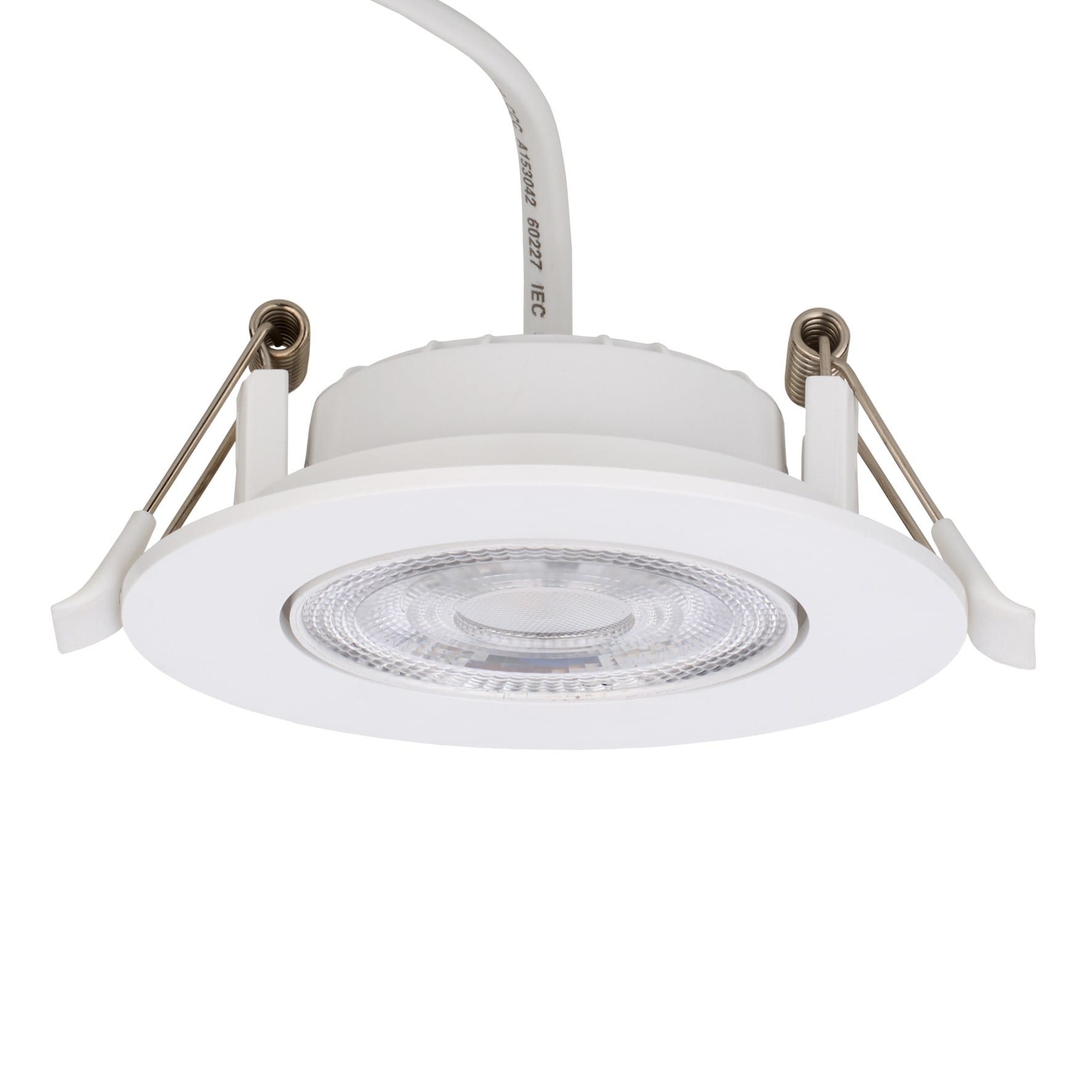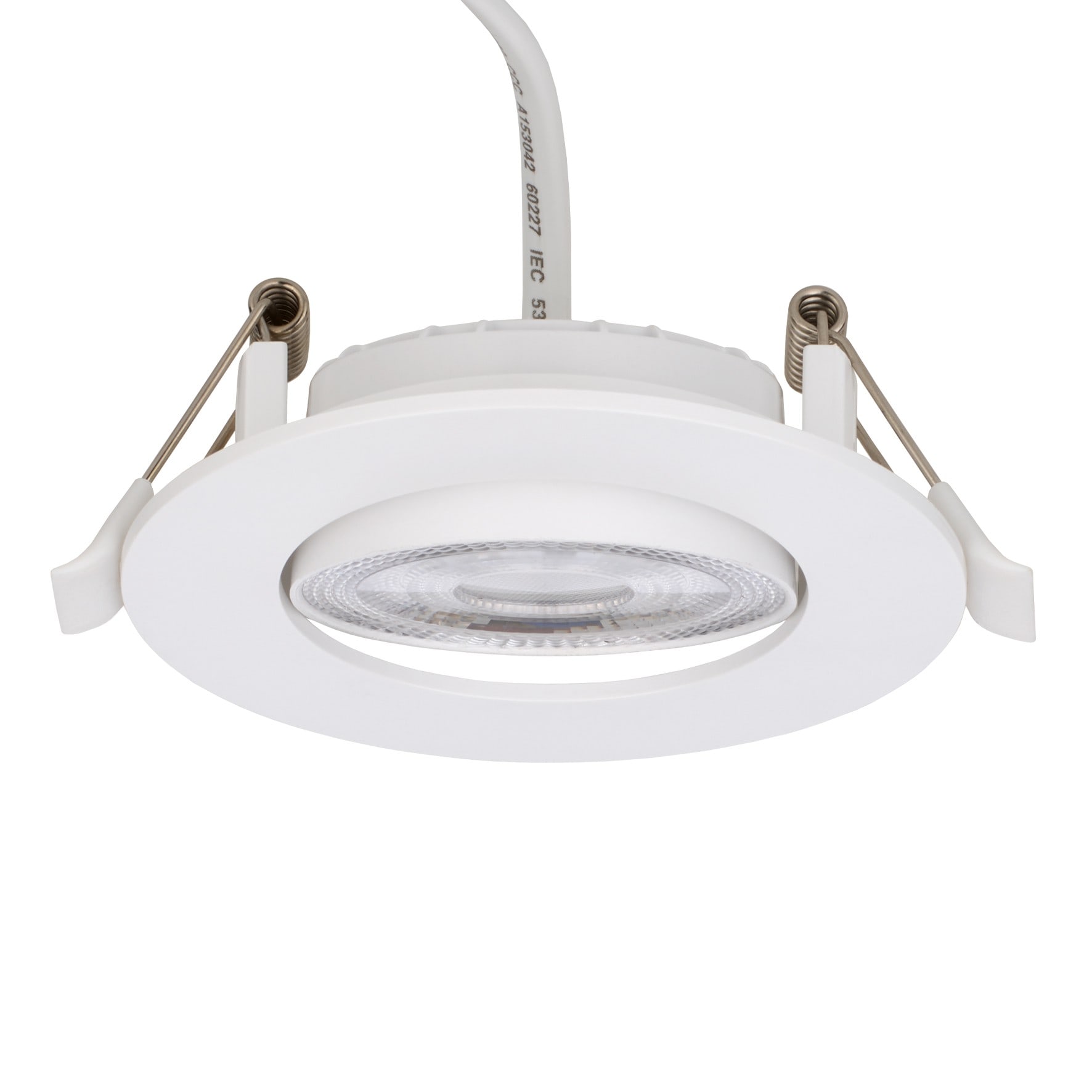 BAILEY LED Spot / Encastré Plafond Orientable Switch (sélecteur 3 teintes et 3 flux) 3W=220lm 5W=300lm 7W=500lm 3000K - 4000K - 6500K - Faisceau 38° - thermoplastique Blanc mat 90x25mm IP20 IK03 Pré-câblé 190mm 2x0.75mm² 230V-240V