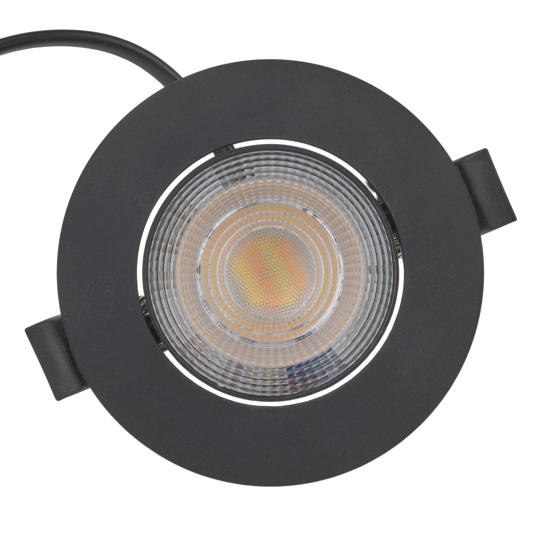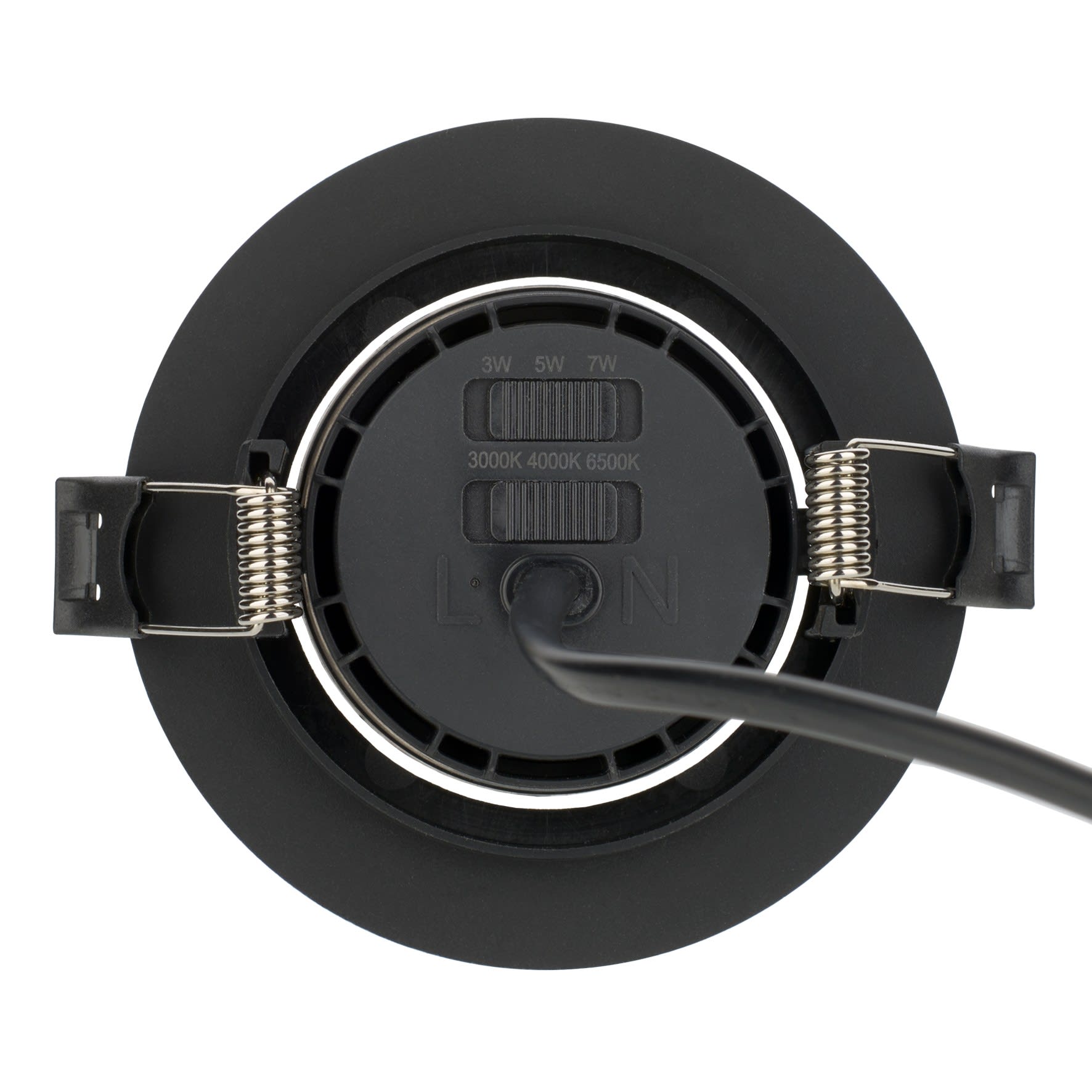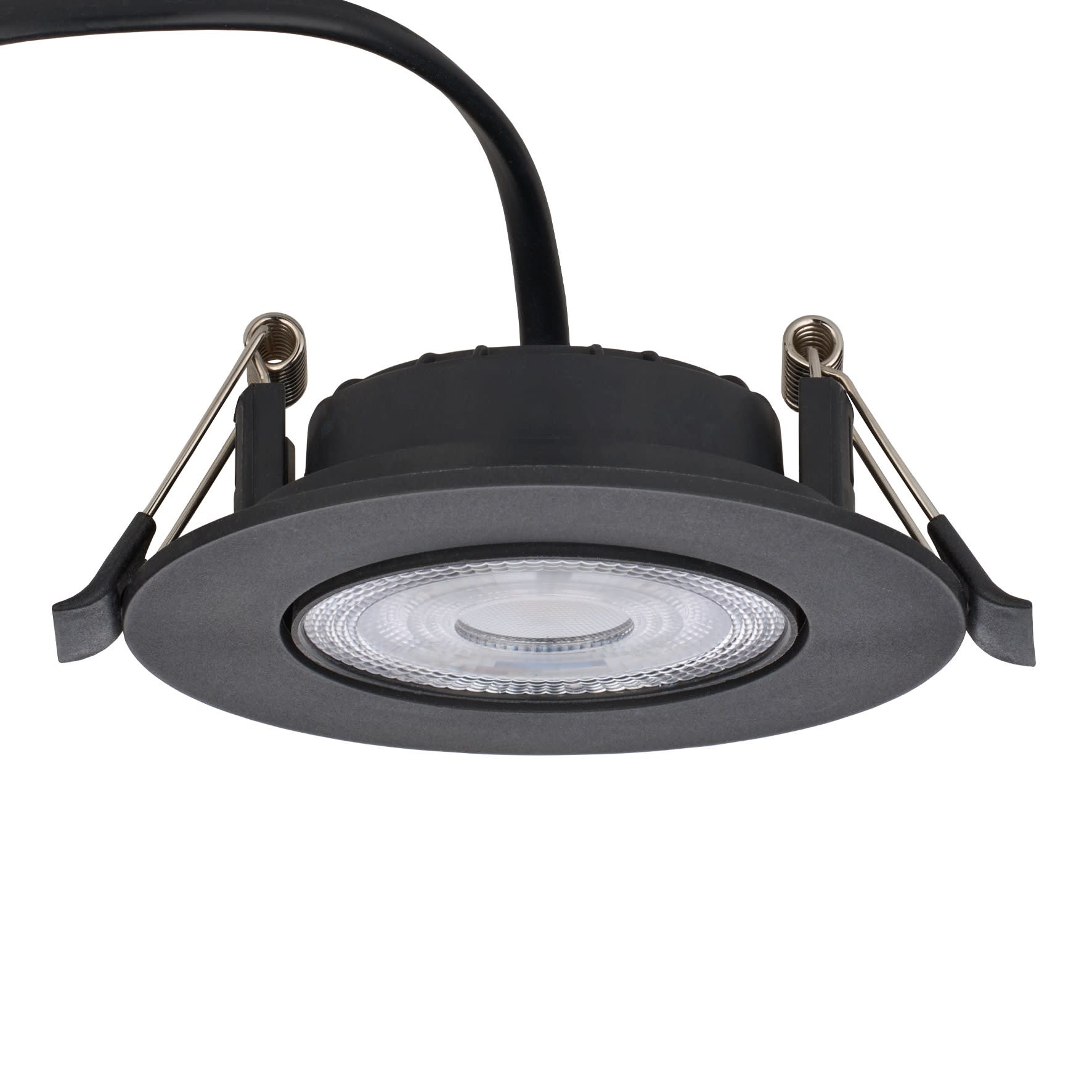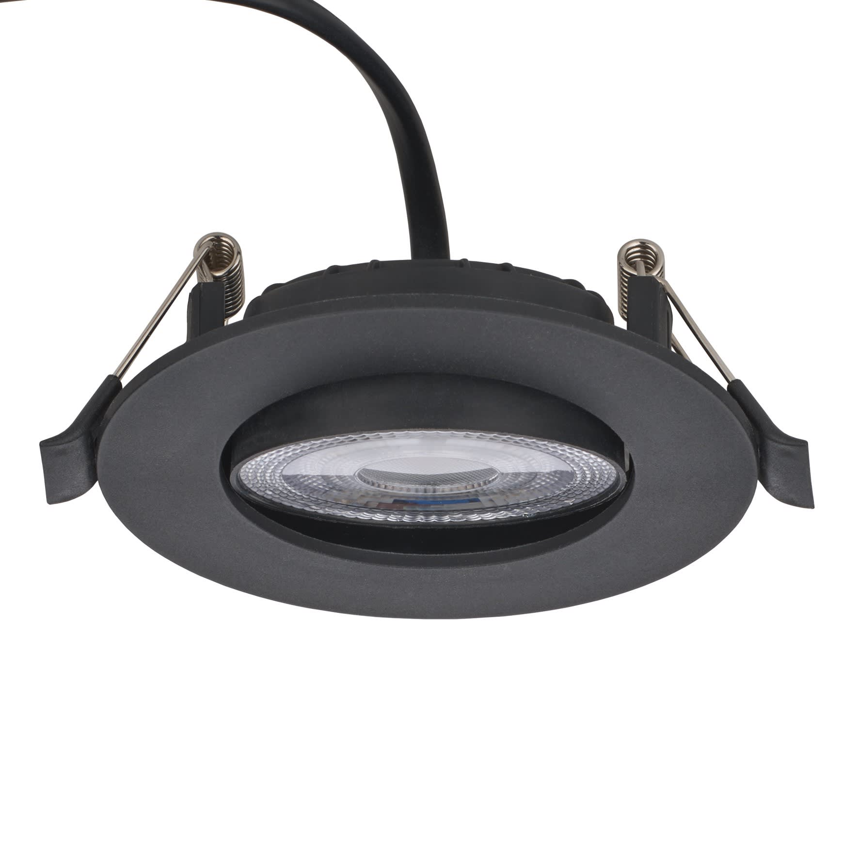 BAILEY LED Spot / Encastré Plafond Orientable Switch (sélecteur 3 teintes et 3 flux) 3W=220lm 5W=300lm 7W=500lm 3000K - 4000K - 6500K - Faisceau 38° - thermoplastique Noir mat 90x25mm IP20 IK03 Pré-câblé 190mm 2x0.75mm² 230V-240V