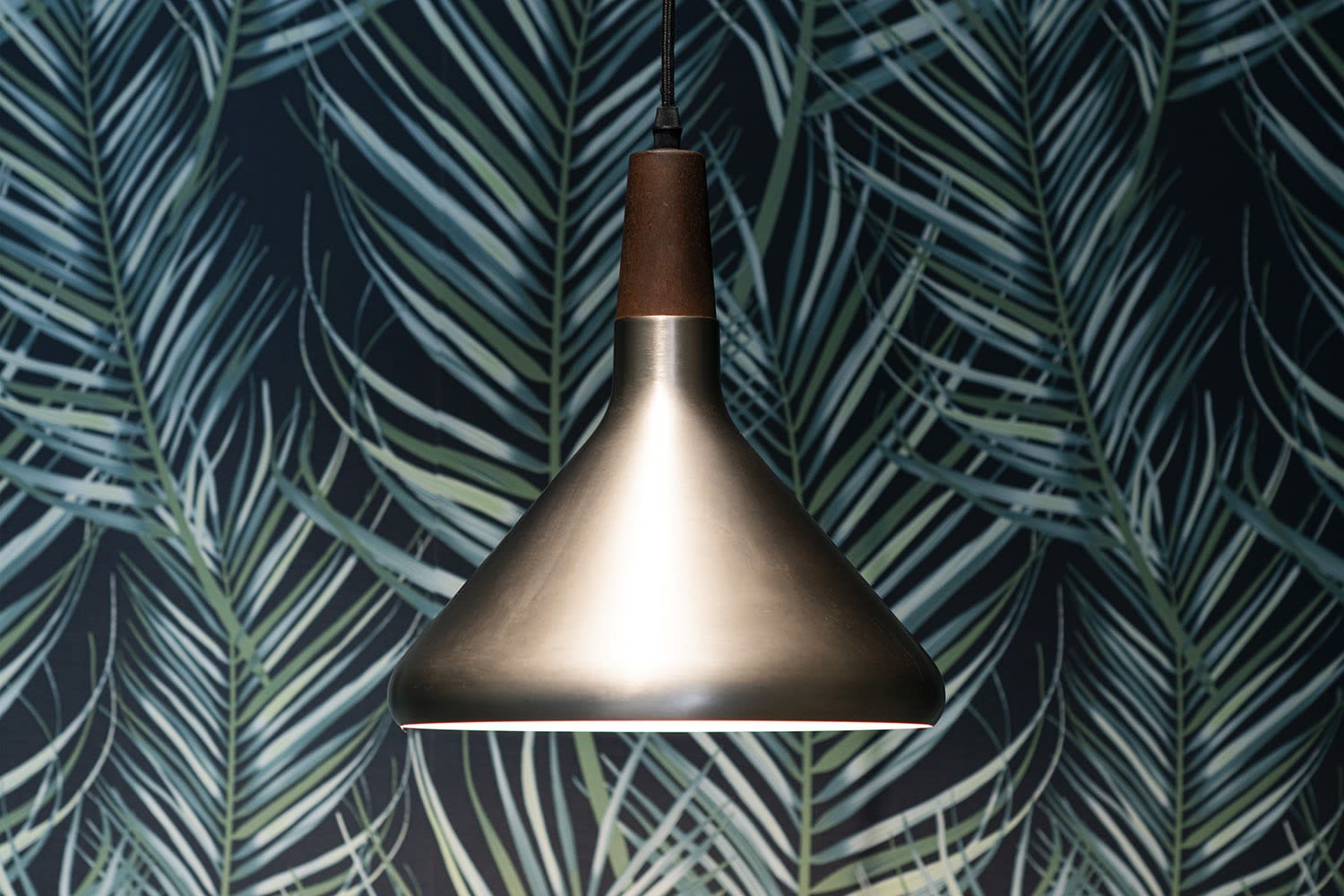 La série Paris Shades se compose de 3 modèles élégants, S (mall), M (edium) et L (arge). L'abat-jour est en aluminium brossé de couleur champagne combiné avec un élégant support en bois. L'intérieur est peint en blanc pour que la réflexion de la source