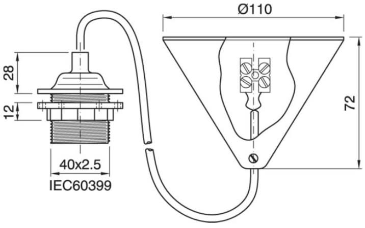 Une suspension plastique qui convient aux sources de lumière E27 et se compose d'une rosace coniques, d'un câble rond de 80 cm et d'un support de lampe E27. Max. charge applicable 2.29KG.