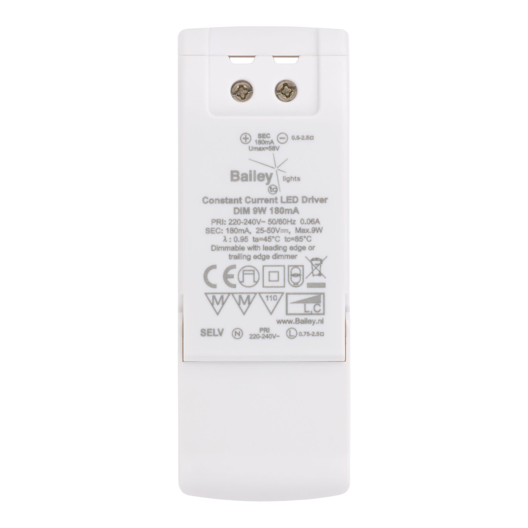 Bailey - TOPO LED Driver 12W 350mA Courant constant IP20 109x40x22mm TRIAC Gradable - 146899
