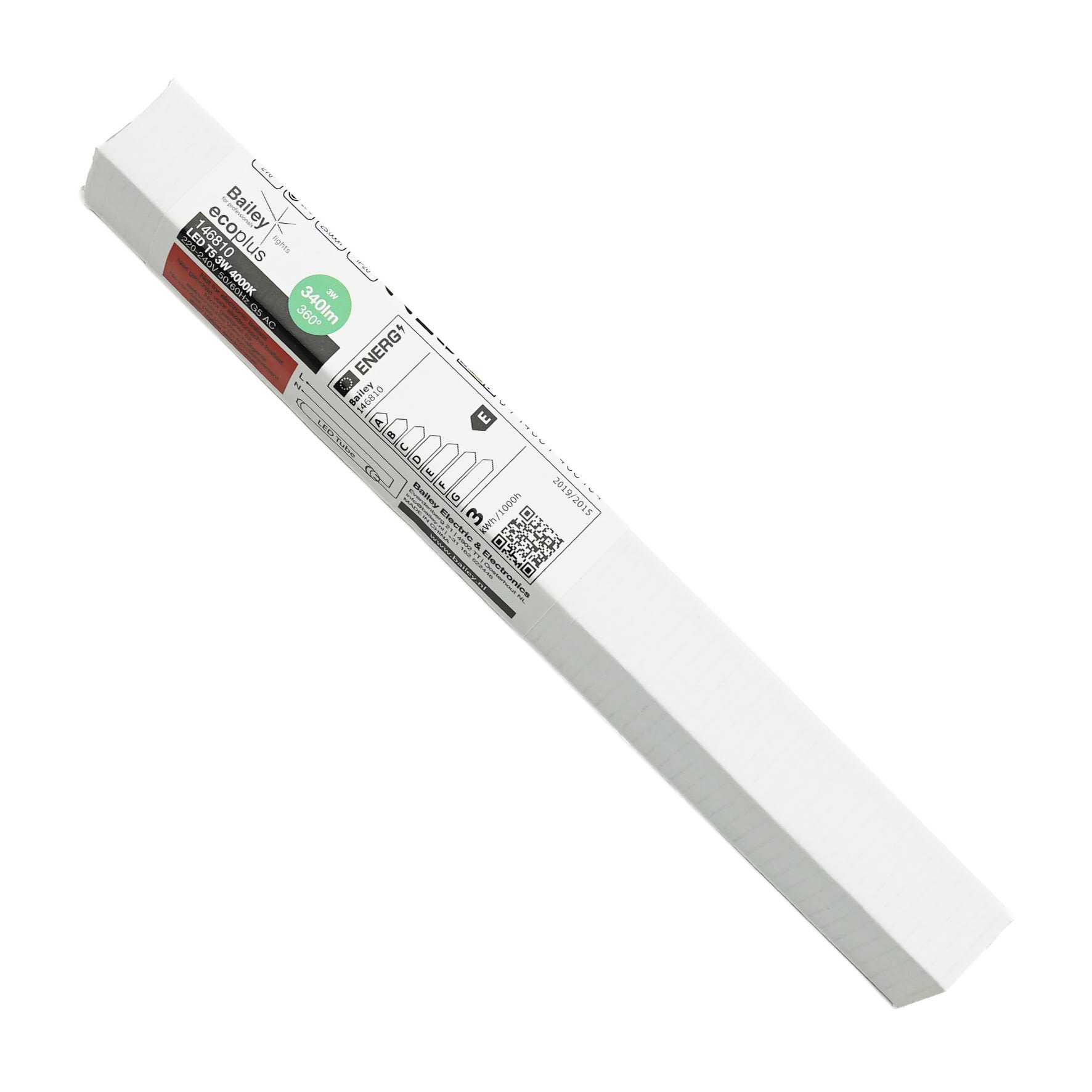 Bailey - Tube LED Ecoplus T5 AC 16x212mm G5 3W (6W) 4000K 340lm Verre 270° Direct 230V - 146810