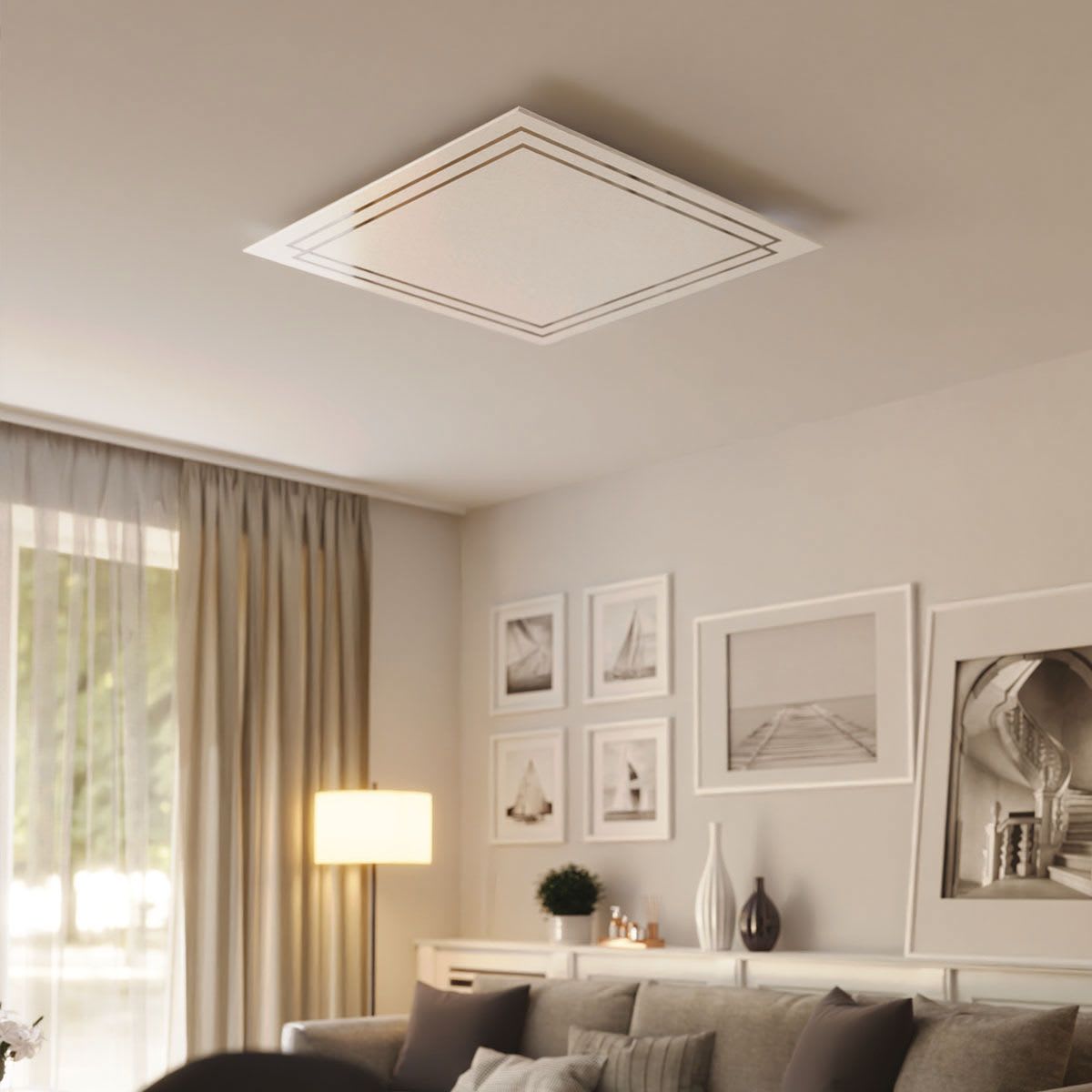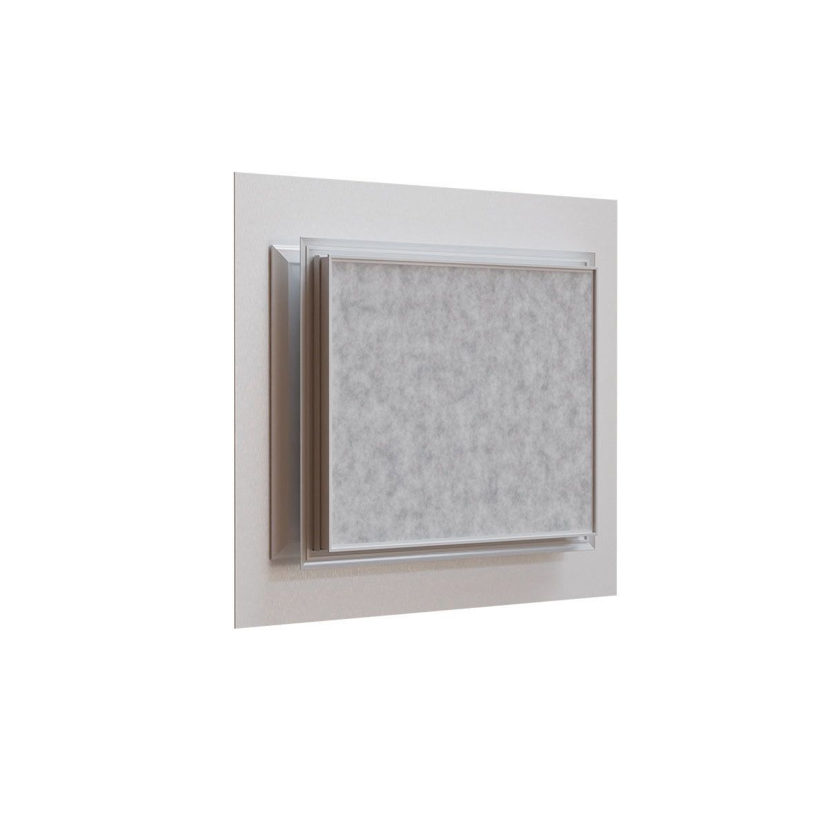 Collecteur de reprise d'air décoratif collection ELEGANCE, pour plénum de 500x400 mm avec enjoliveur finition blanc satiné / miroir argenté de 700x600 mm - filtre G3 inclus - Débits admissibles : 600 à 1200 m3/h - Fabrication française