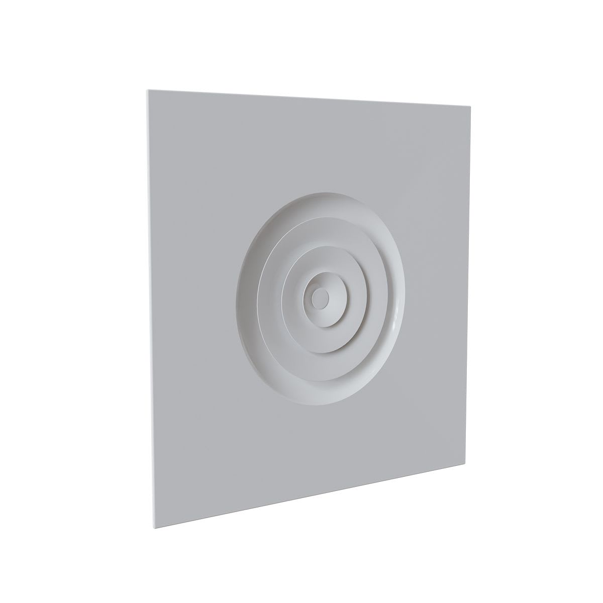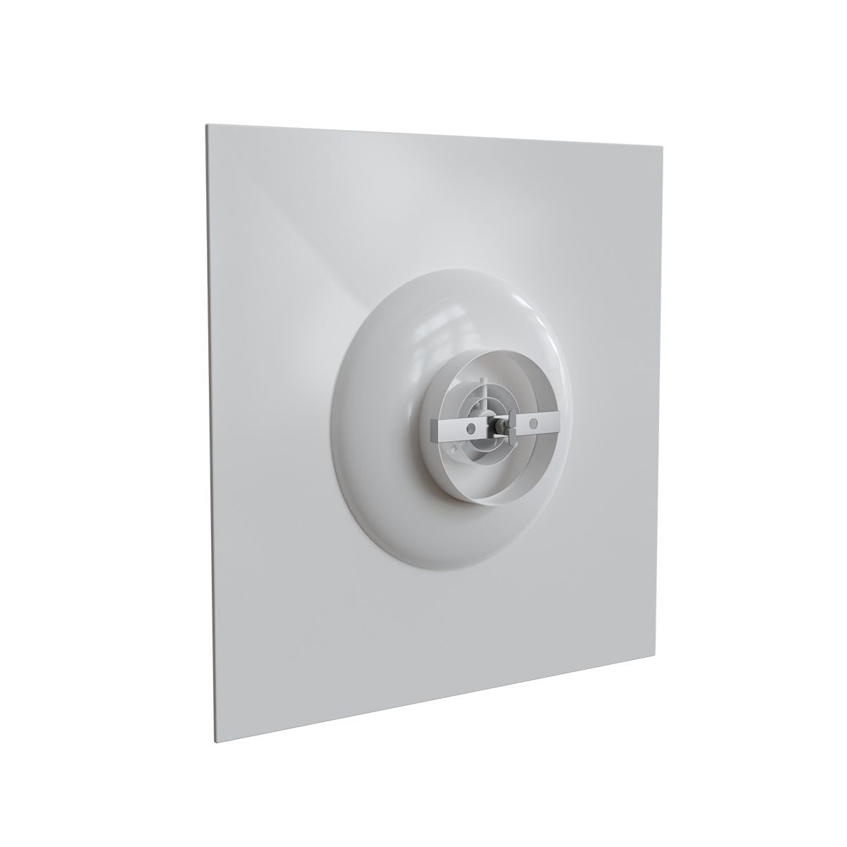 Diffuseur circulaire en acier époxy blanc mat RAL 9016 pour dalle de faux-plafond de 600x600 mm - avec déflecteurs ronds en partie centrale - raccordement Ø 160 mm - Débit d'air réglable : 100 à 250 m3/h