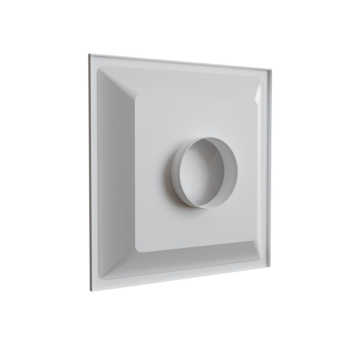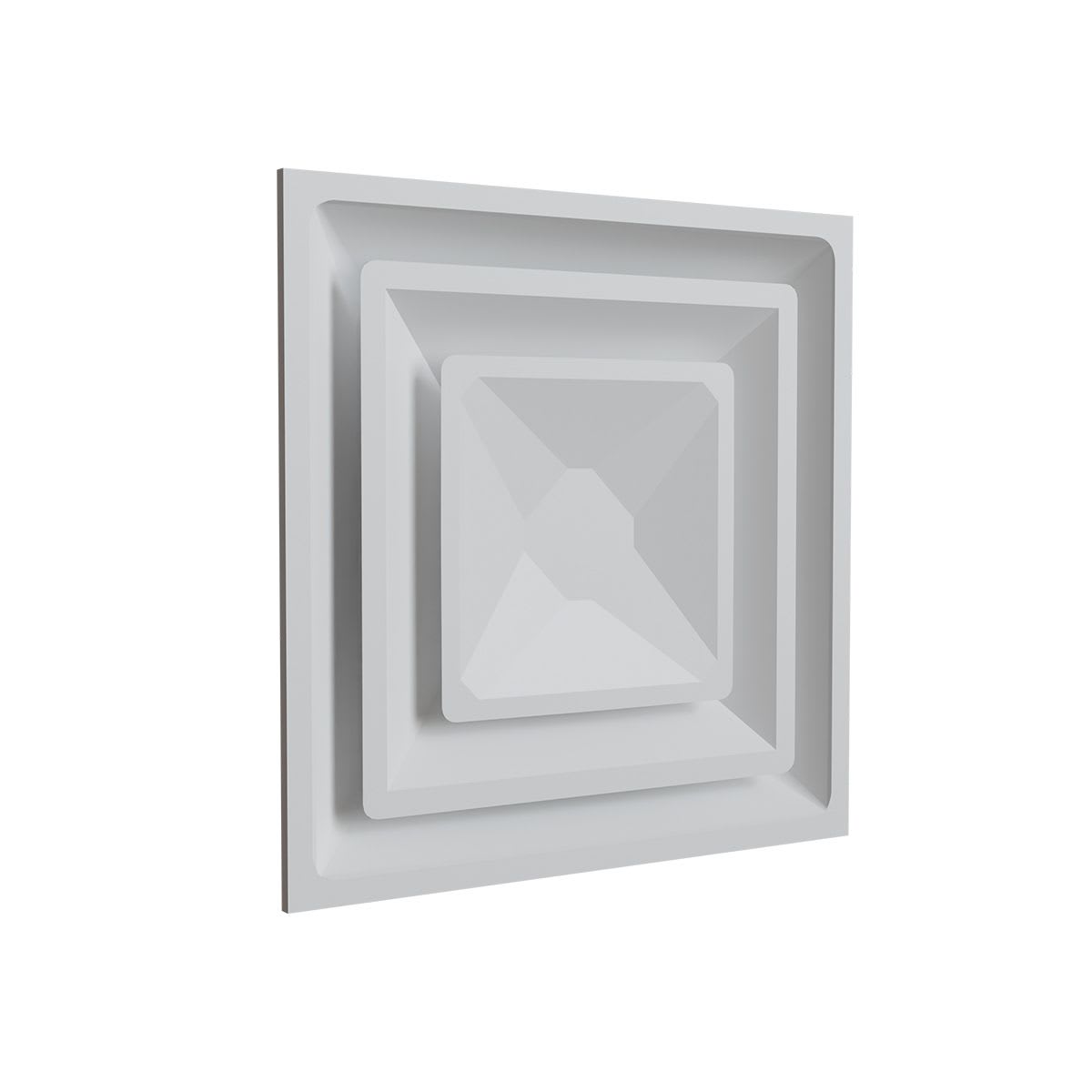 Diffuseur circulaire en acier époxy blanc mat RAL 9016 pour dalle de faux-plafond de 600x600 mm - avec déflecteurs carrés en partie centrale - raccordement Ø 200 mm - Débit d'air réglable : 200 à 400 m3/h