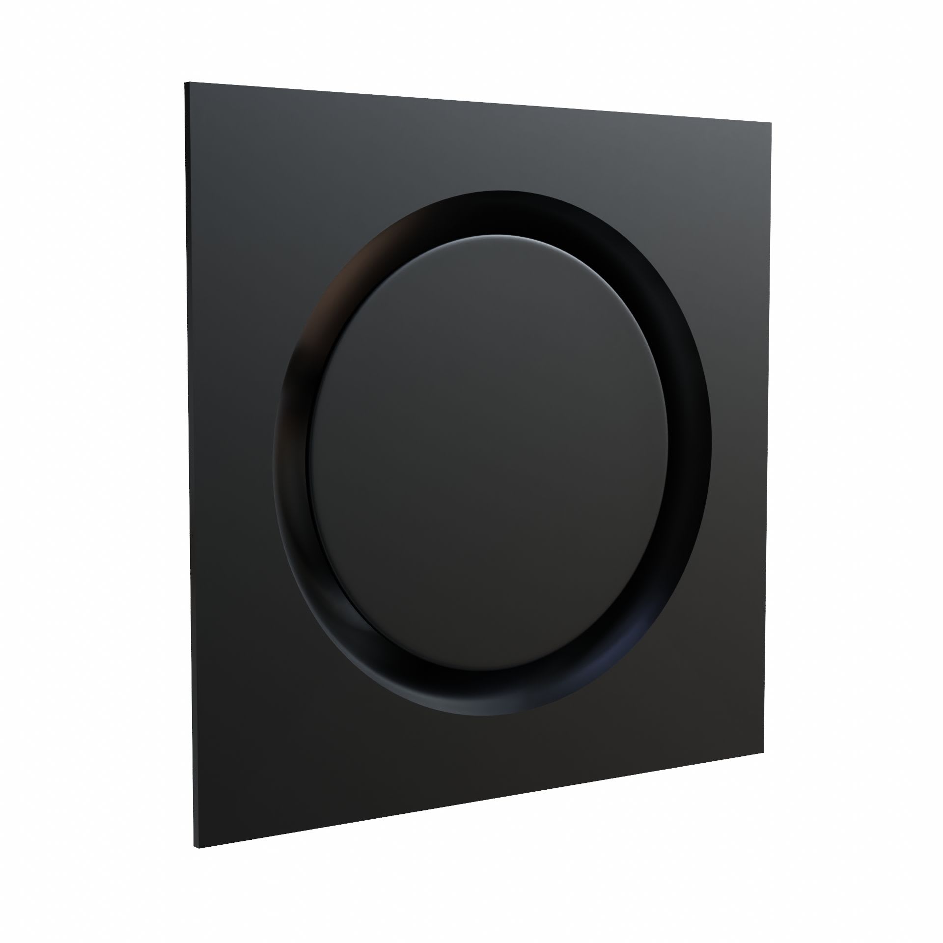 Diffuseur circulaire en acier époxy noir mat RAL 9005 pour dalle de faux-plafond de 600x600 mm avec enjoliveur circulaire en partie centrale. Raccordement Ø 200 mm. Débit d'air réglable : de 200 à 400 m3/h
