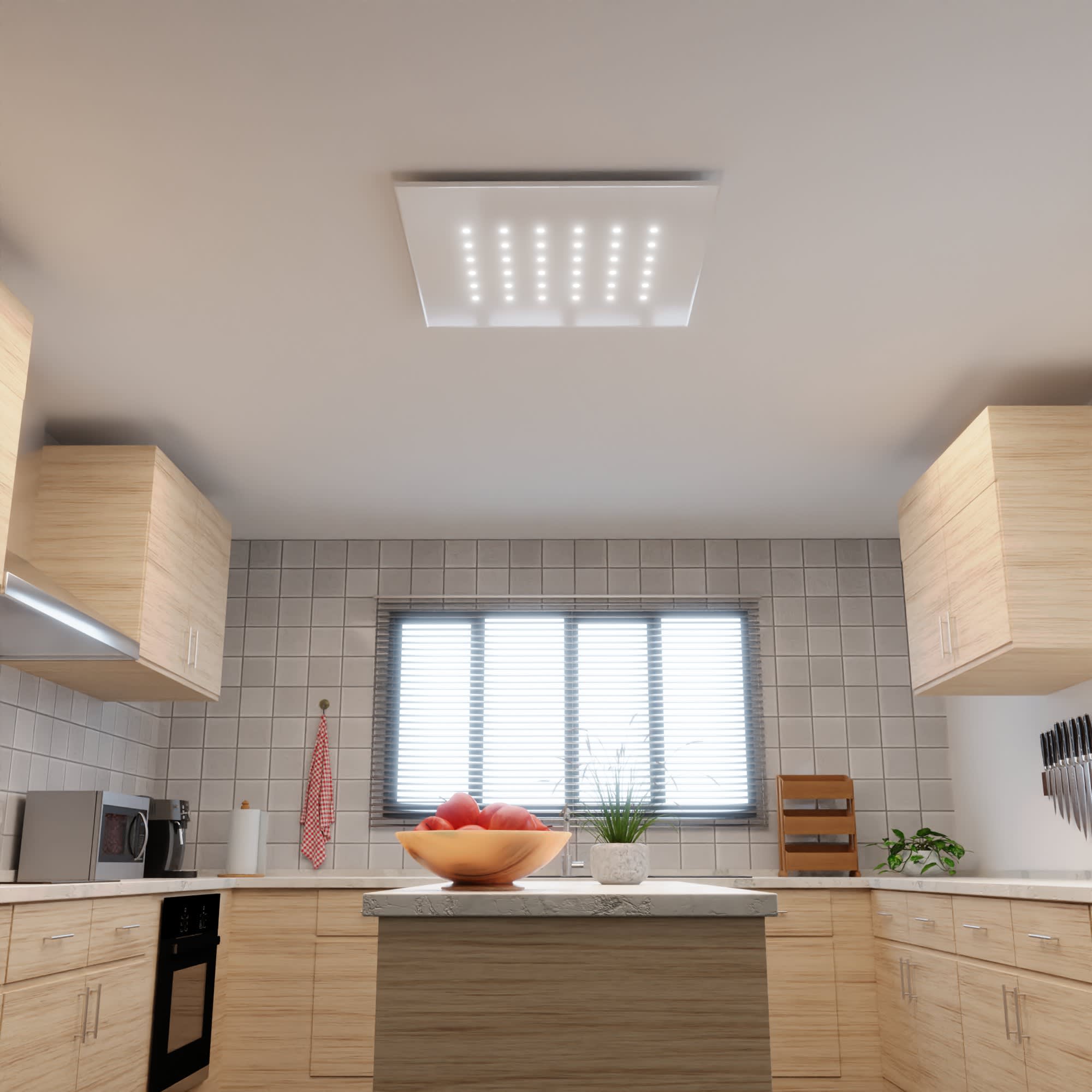 Diffuseur de soufflage CASSIOPEE, finition Blanche, pour plénum de 400x200 mm avec enjoliveur de 600x600 mm comprenant 24 LED