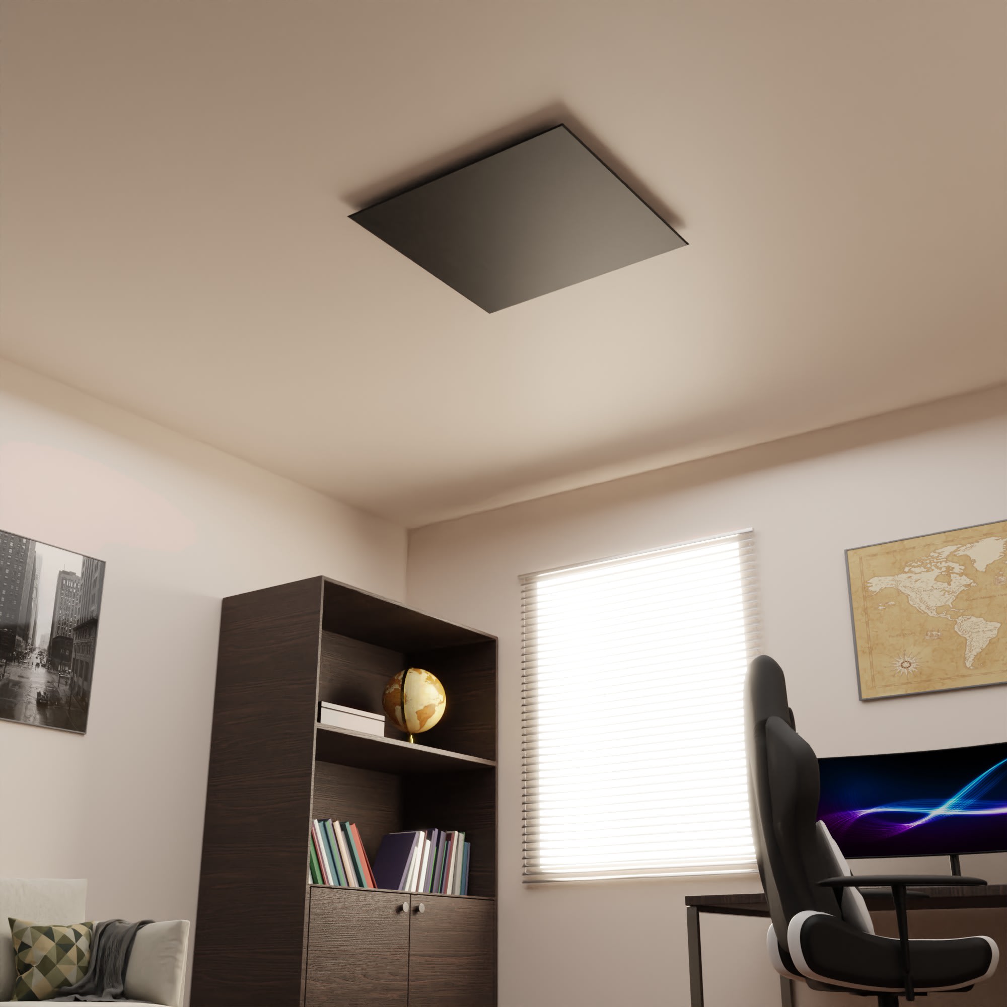 Diffuseur de soufflage CONFORTBLACK pour plénum de 500x150 mm avec enjoliveur en PVC blanc satiné de 700x350 mm
