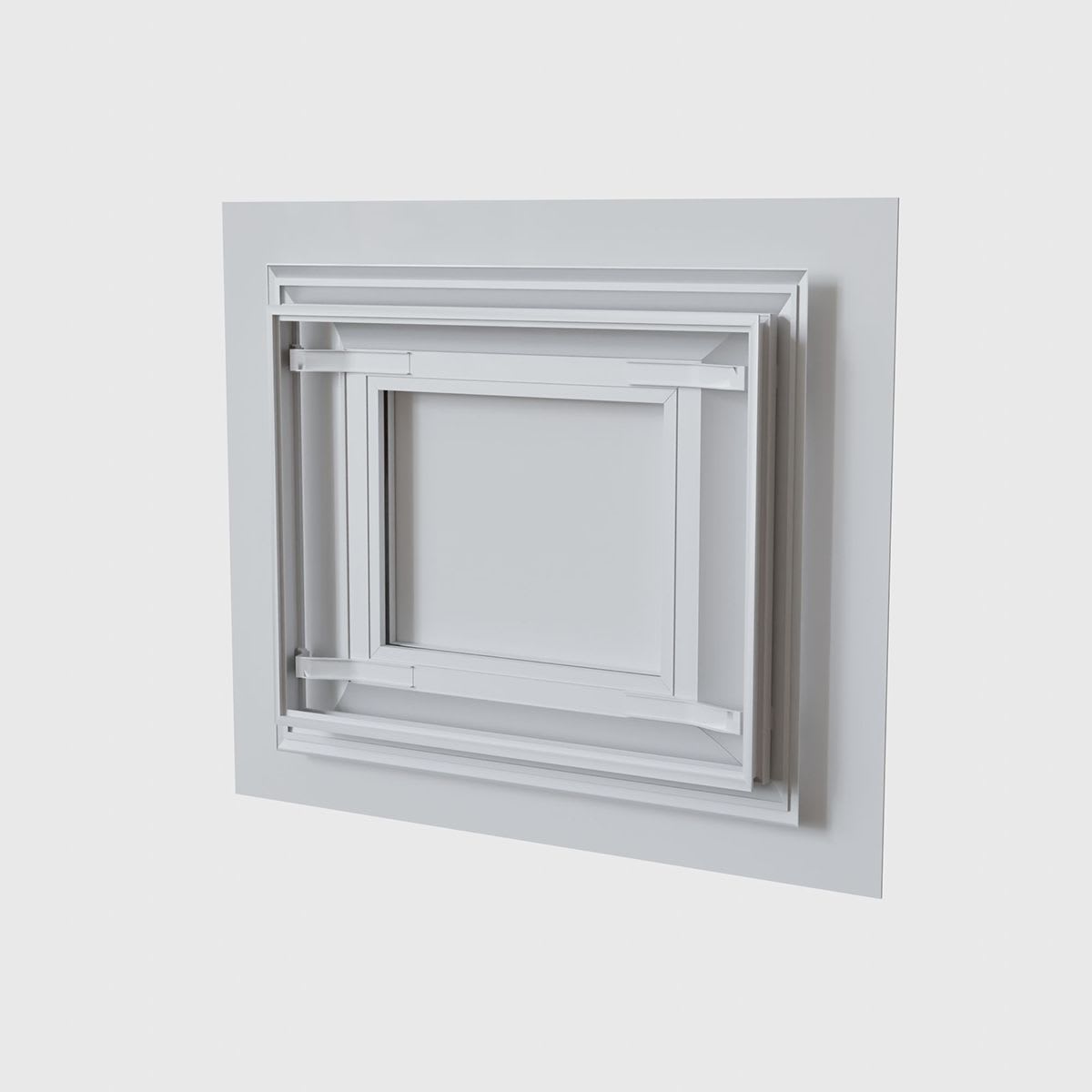 Diffuseur de soufflage d'air décoratif CONFORTWHITE pour plénum de 500x400 mm, avec enjoliveur en PVC rigide blanc satiné classé M1, de 700x600 mm