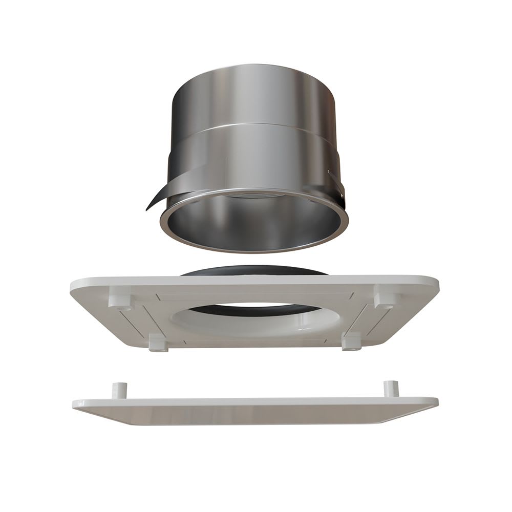 Design minimaliste , Raccordement direct de la gaine sur la manchette acier fournie , Livré avec 4 volets pour une orientation optimale des flux d'air
