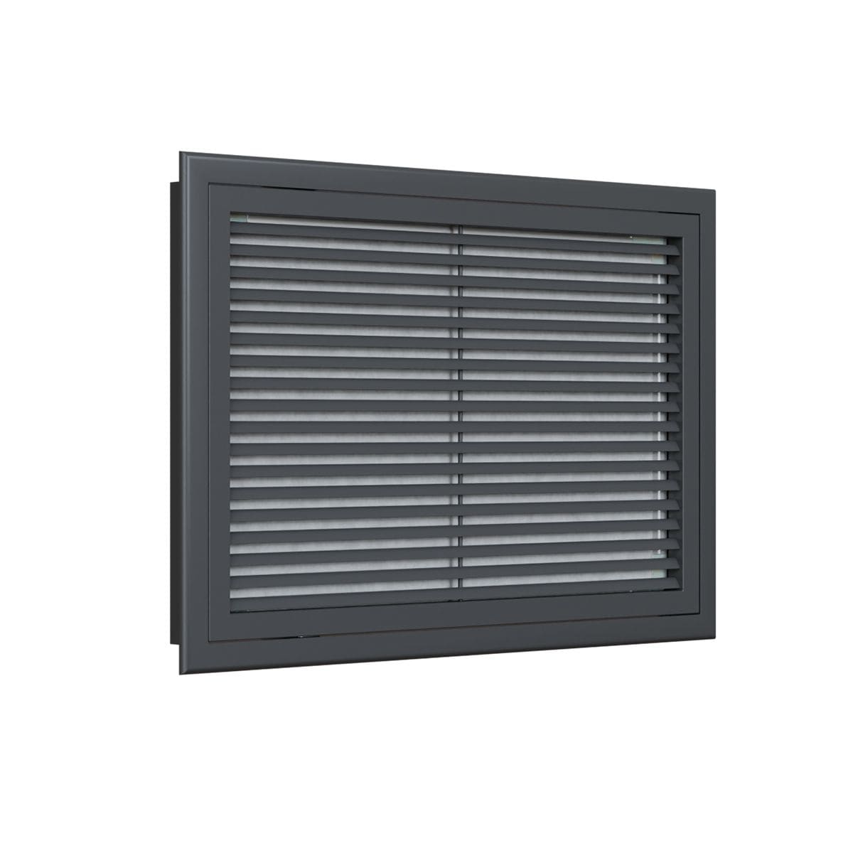 Grille de reprise porte-filtre à ailettes droites en aluminium époxy anthracite RAL7016 de 500x400 mm - cadre à bord arrondi - avec filtre qualité G3 - débit d'air : 800 m3/h