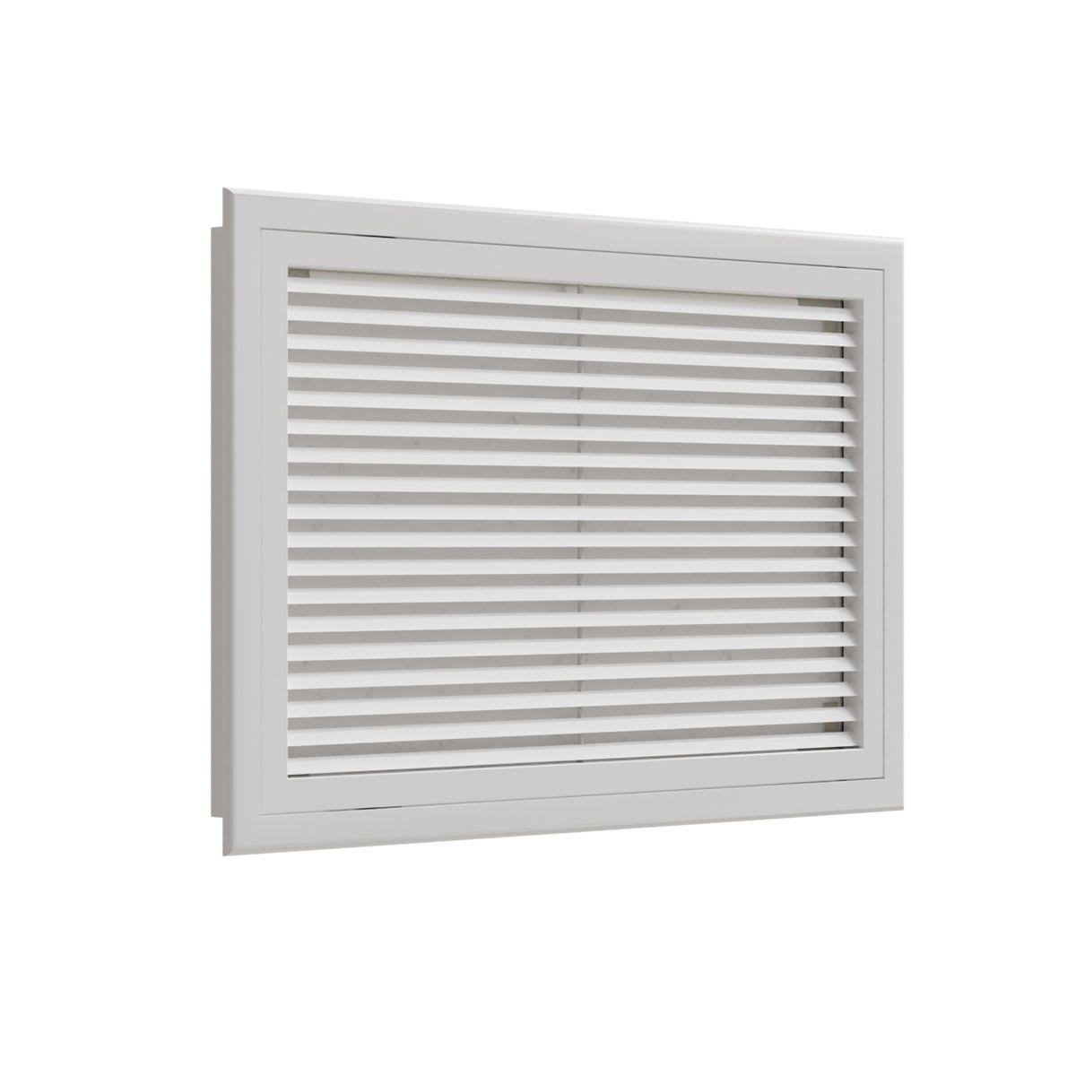 Grille de reprise porte-filtre à ailettes droites en aluminium époxy blanc mat RAL9016 de 600x400 mm - cadre à bord arrondi - avec filtre qualité G3 - débit d'air : 900 m3/h