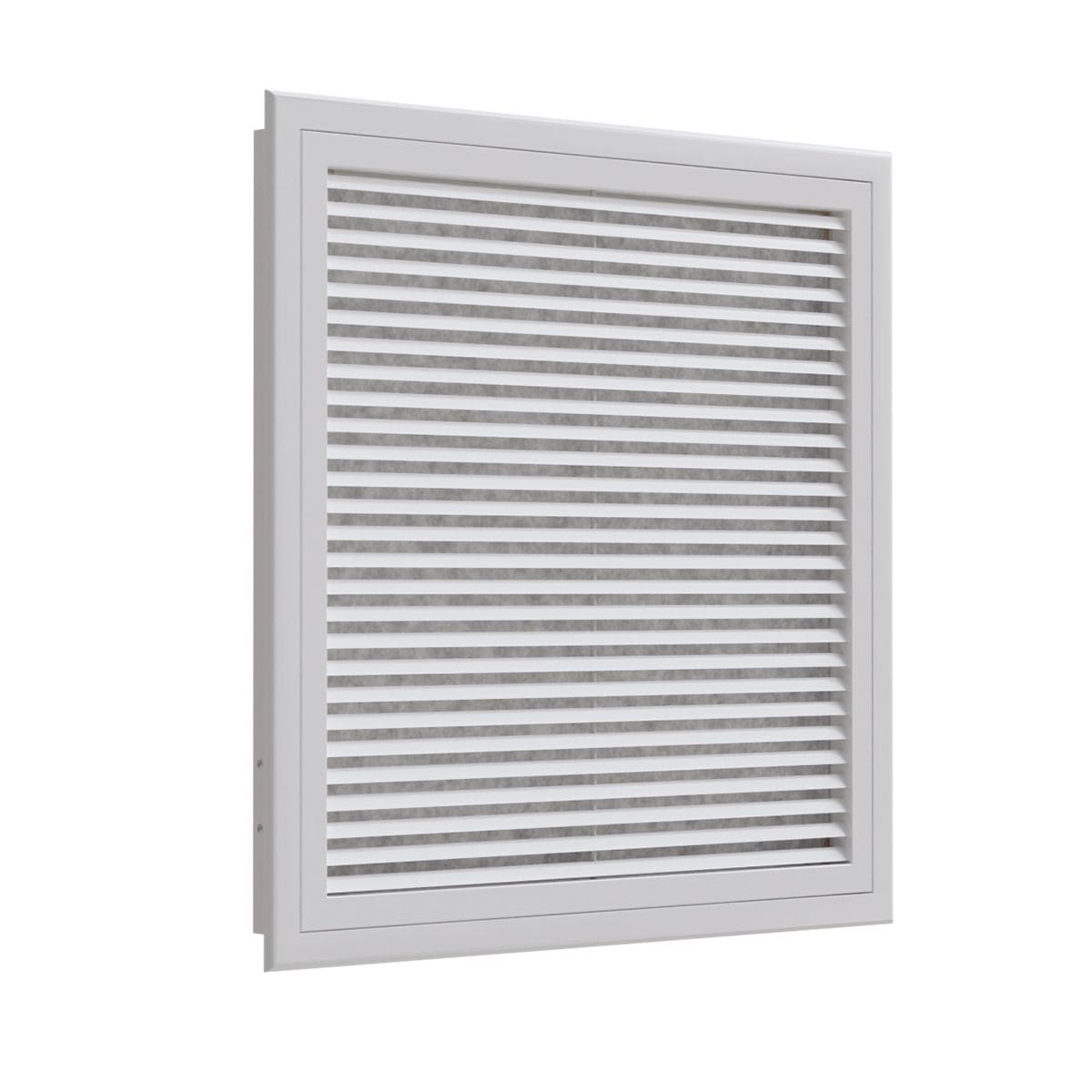 Grille de reprise porte-filtre à ailettes droites en aluminium époxy blanc mat RAL9016 de 600x600 mm - cadre à bord arrondi - avec filtre qualité G3 - débit d'air : 1500 m3/h