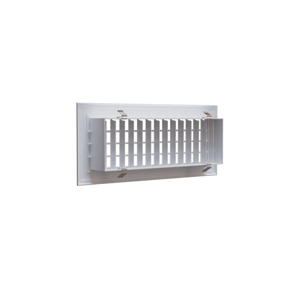 Réalisée en aluminium blanc mat (RAL 9016) , Fixation par clips inox inclus , Installation murale ou plafonniere , Ailettes verticales et horizontales orientables manuellement