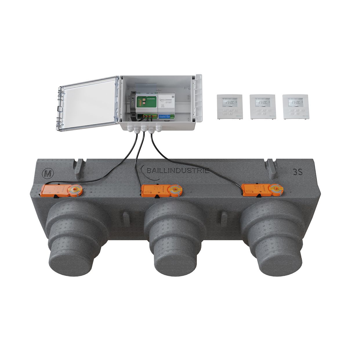 BAILLINDUSTRIE - Pack de régulation BAILLZONING à 3 zones thermostats Blancs - PACK 3TB 3M 3S