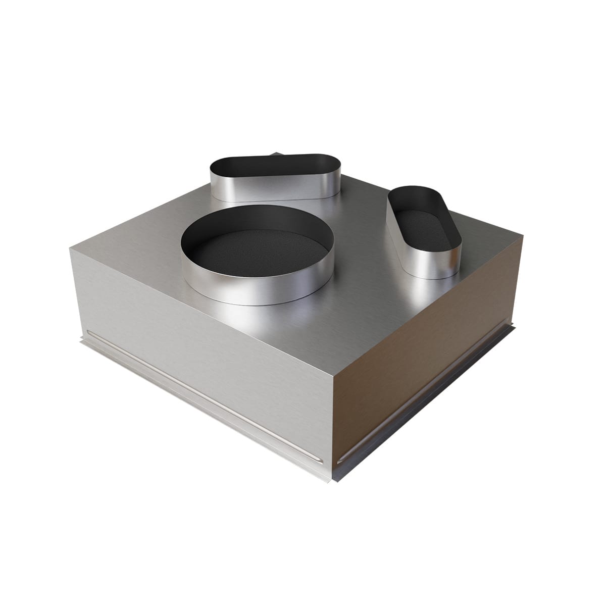 BAILLINDUSTRIE - Plénum acier isolé de 600 x 600 mm avec 2 piquages arrières Ø 200 + 1x Ø 250 mm - PLACI/AR/ISO 600X600