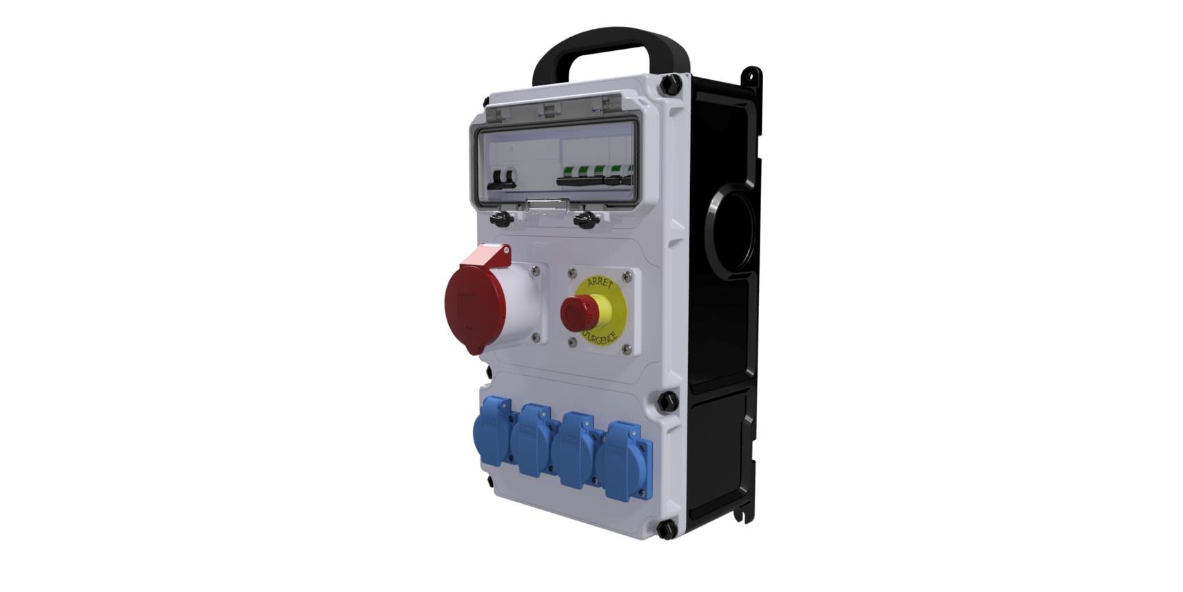 Réf. : 510230Triphasé +N 40AEquipé de :• 4 PC à obturateurs à éclips 10/16A 2P+T 250V NF• 1 PC 3P+N+T 32A 400V• 1 Inter différentiel 4x40A 30mA• 2 Disjoncteurs PH/N 16A (1 pour 2PC)• 1 Disjoncteur 3P+N 32A1 bouton arrêt d’urgencePIEDS EN OPTION réf. 58106