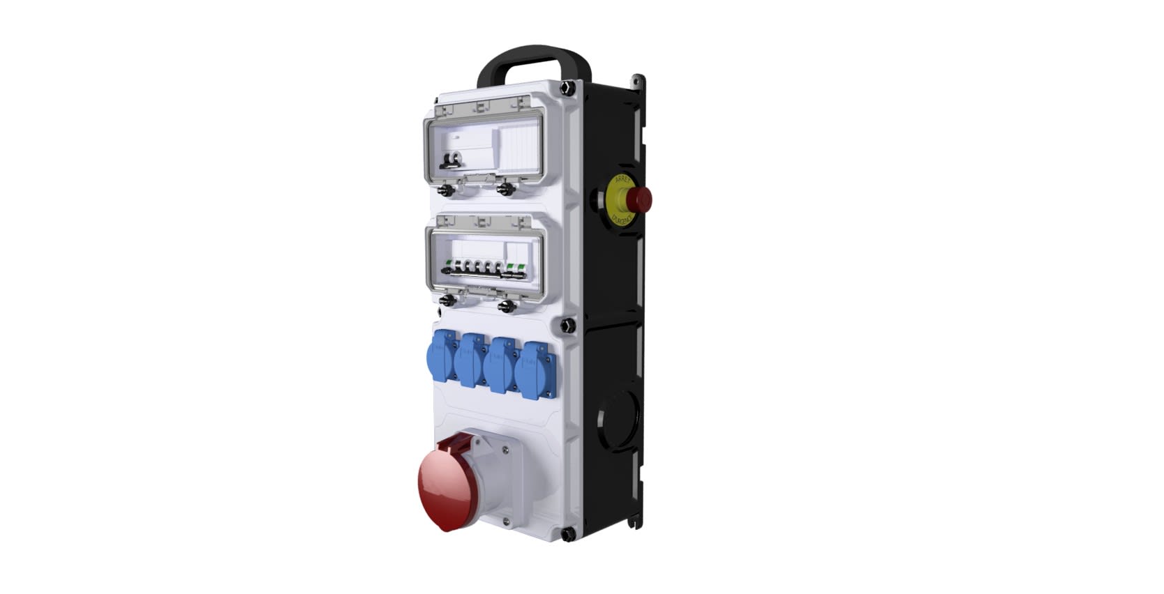 Réf. : 510242Triphasé +N 80AEquipé de :• 4 PC à obturateurs à éclips 10/16A 2P+T 250V NF• 1 PC 3P+N+T 63A 400V IP44 à pré-coupure par Bobine MN• 1 Inter différentiel 4x80A 30mA• 2 Disjoncteurs PH/N 16A (1 pour 2PC)• 1 Disjoncteur 4P 63A1 bouton arrêt d’urgencePIEDS EN OPTIONréf. 58108