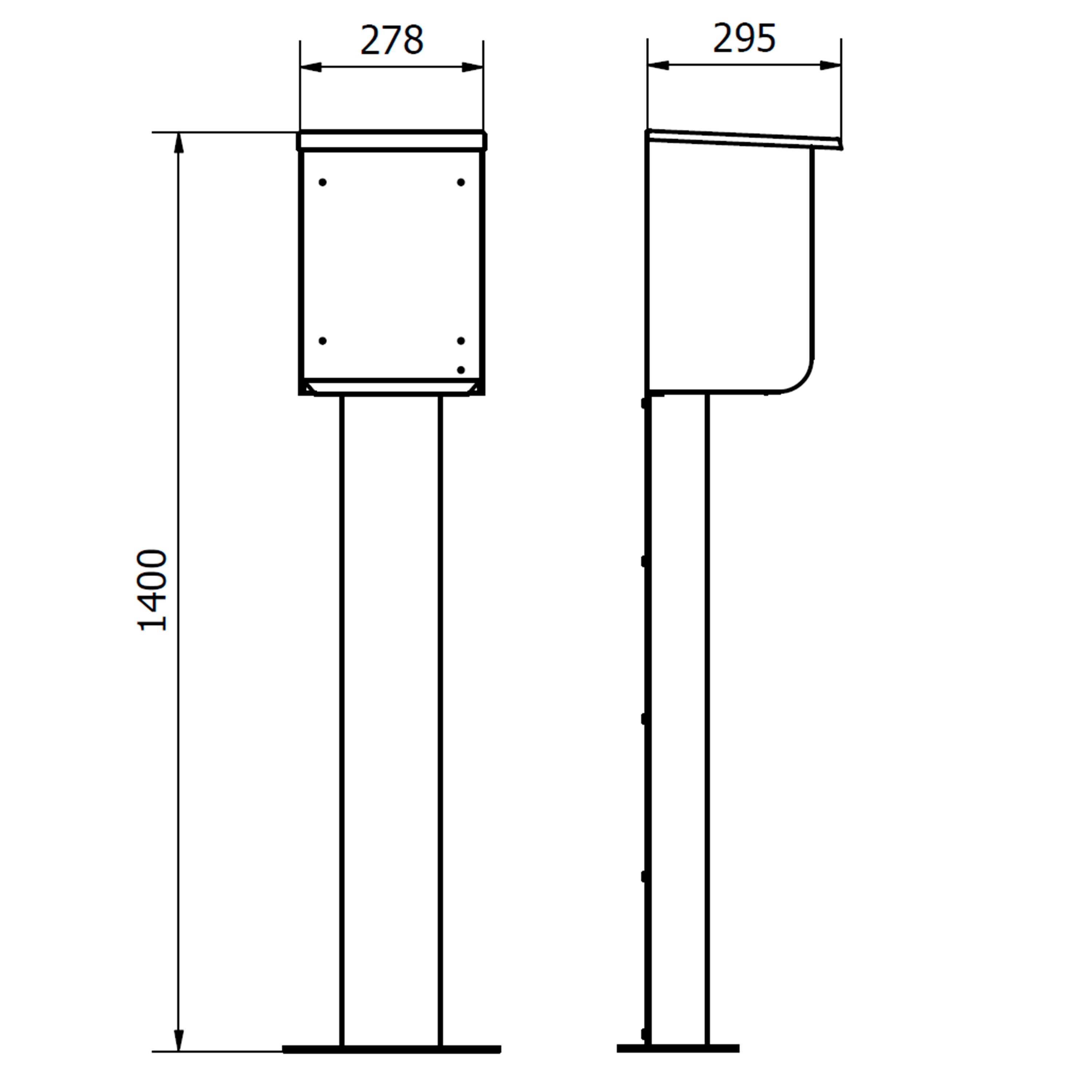Pied Inox avec casquette anti-pluie EBIKE Dimensions 1400mm x 280mm x 255mmPour intégration Variabox taille M