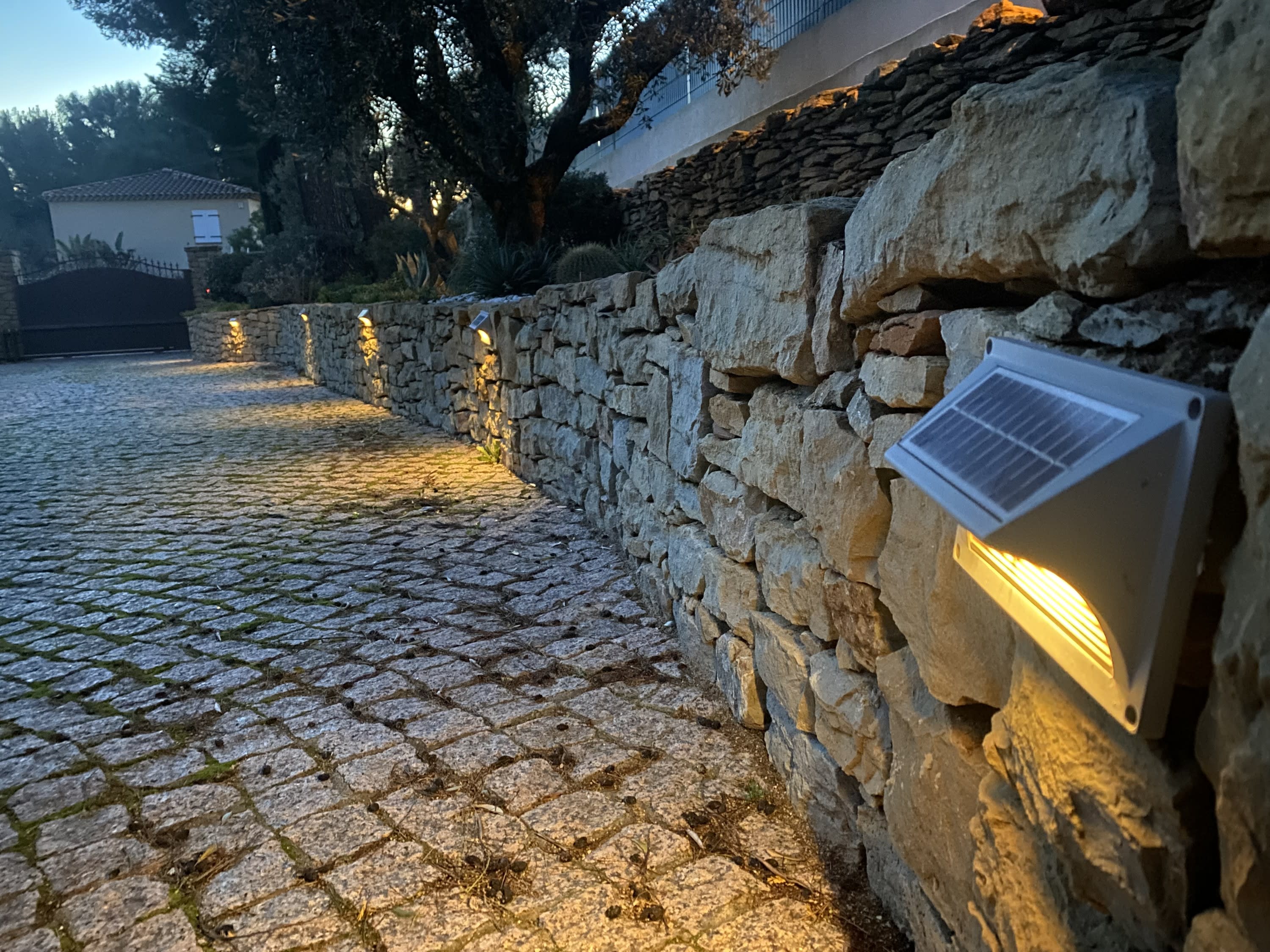 Applique murale de balisage solaire - 3000°K - Faisceau 120° - 80 Lumens - Panneau solaire 1 Watts - Batterie Li-ion 2000 mAh/3,7V - Fixations incluses - Temps de charge 8h - Autonomie 8h -Détecteur crépusculaire