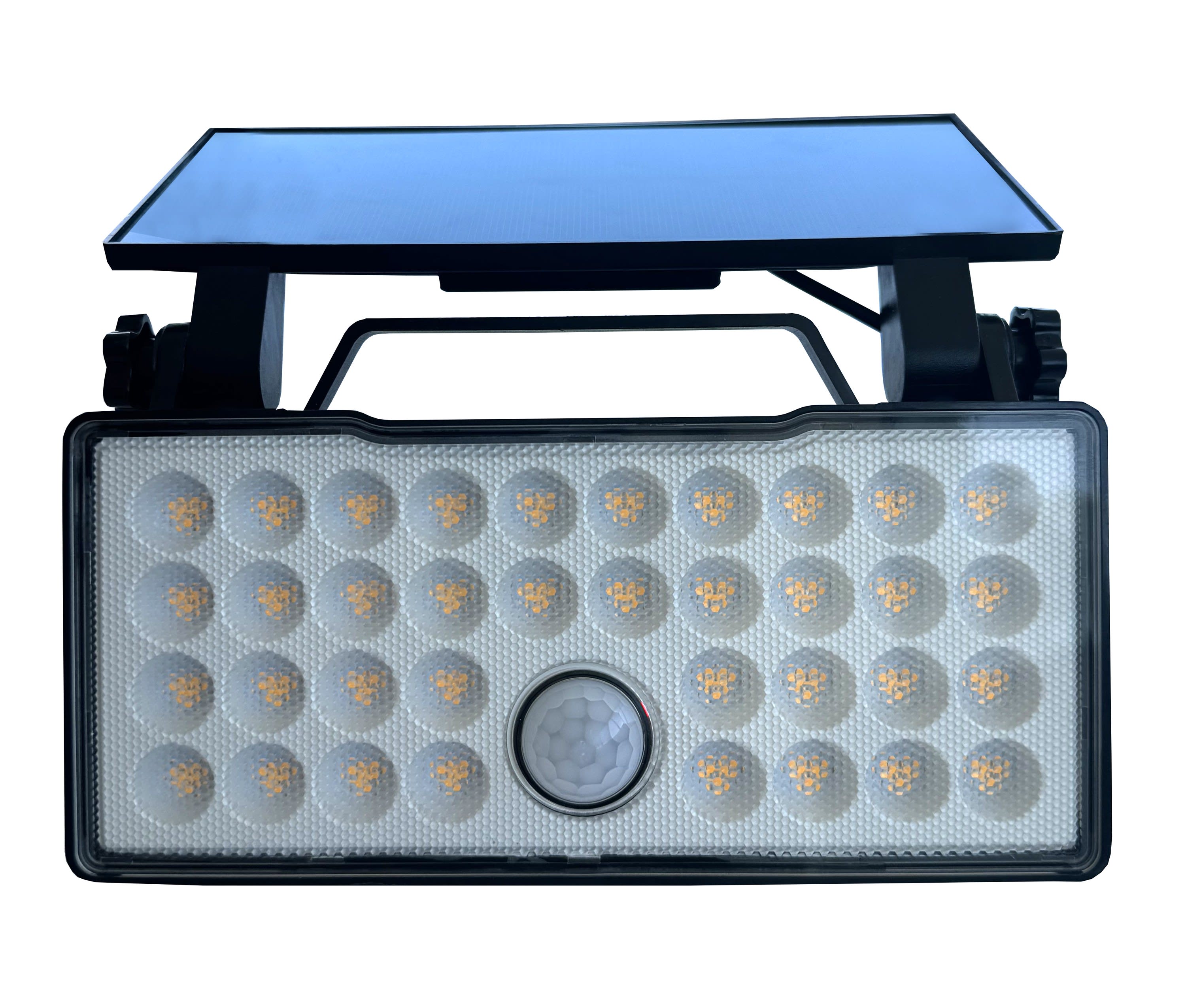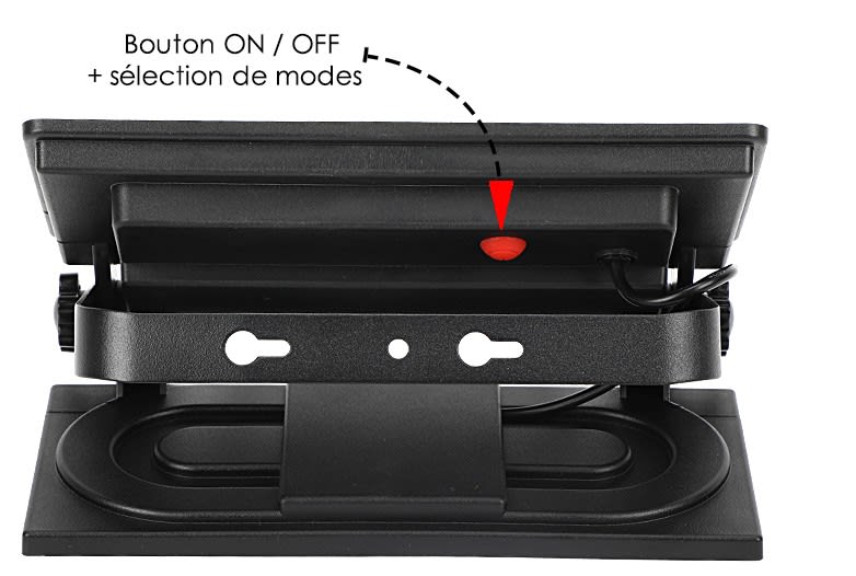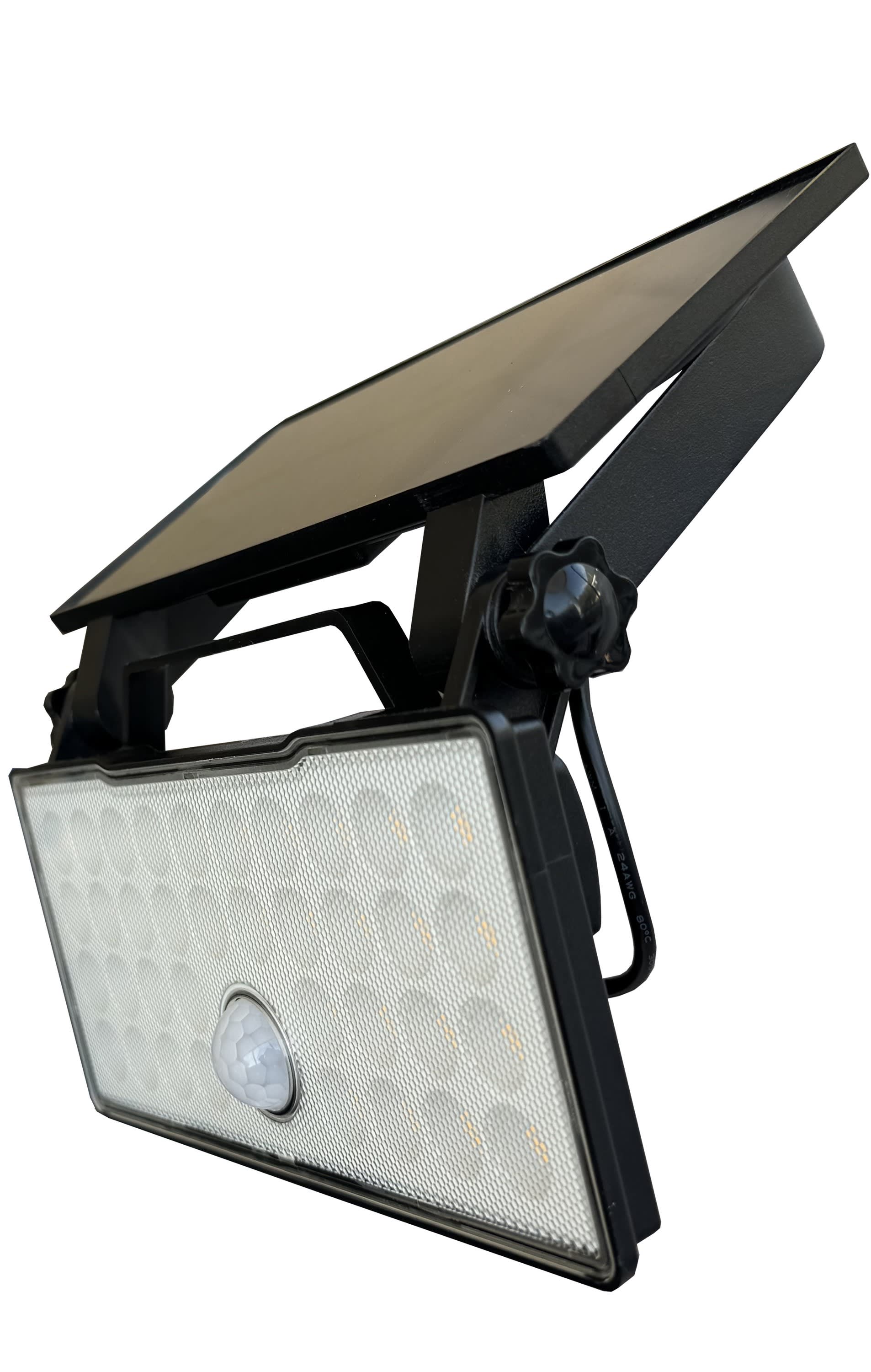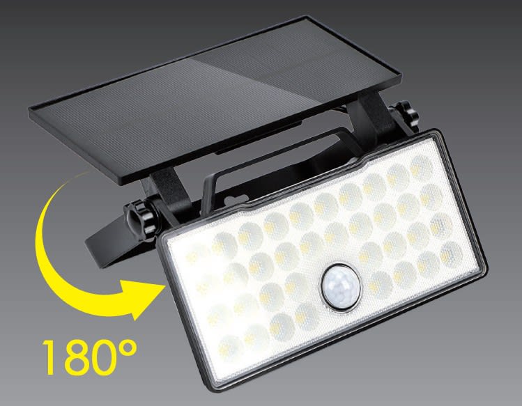 Applique/Projecteur mobile solaire noire 3000°K - 120° - 1200Lm éclairage fixe ou détection - panneau solaire 2,6W / batterie Li-ion 2600mAh/3,7V - IP65 - Détecteur de mouvements 120°-6m - 3 modes - Polycarbonate + ABS + Anti UV + Métal