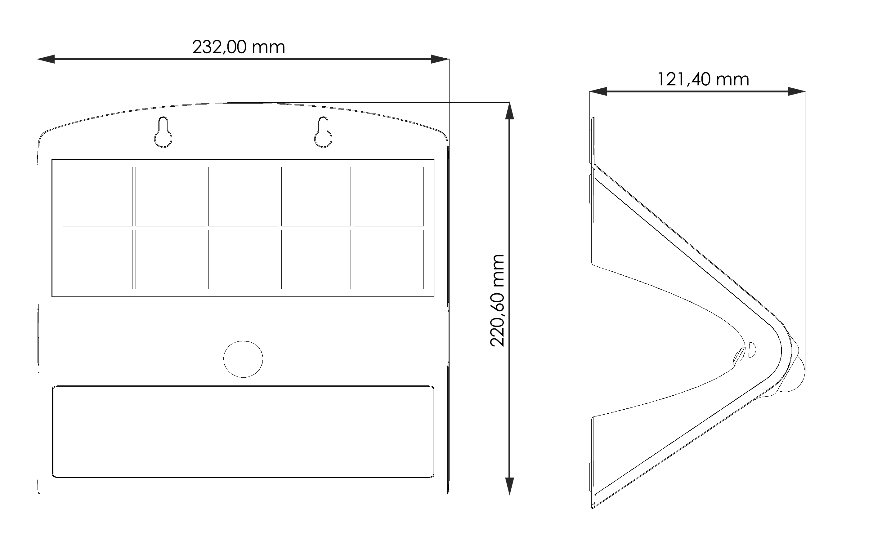 Applique solaire Duo blanc 3000°K - 8W - 850Lm - détection IR - éclairage avant balisage arrière - faisceau 90° - panneau 4,4W - batterie Li-ion 4000 mAh/3,7V remplaçable / IP65 -polycarbonate-ABS-anti-UV - mode fixe ou veille+détection