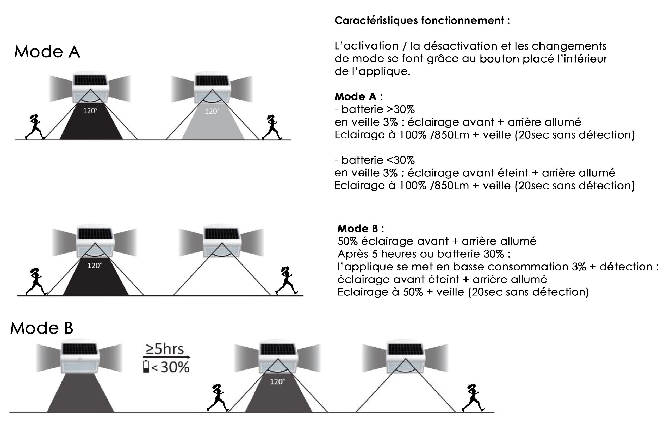 BF LIGHT - Applique solaire Duo noir 850Lm mode fixe ou veille+détection IR - BF-DUO3BK