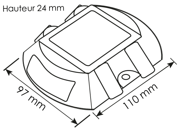 Balisage routier de sol solaire - 4000°K - Faisceau 120° - 80 Lumens - Panneau solaire 0,3 W - Batterie NI-MH-600mAh /1,2V - IP67 - Temps de charge 8h - Autonomie 8h - Résistant 40 T - Aluminium/Verre trempé - Détecteur crépusculaire