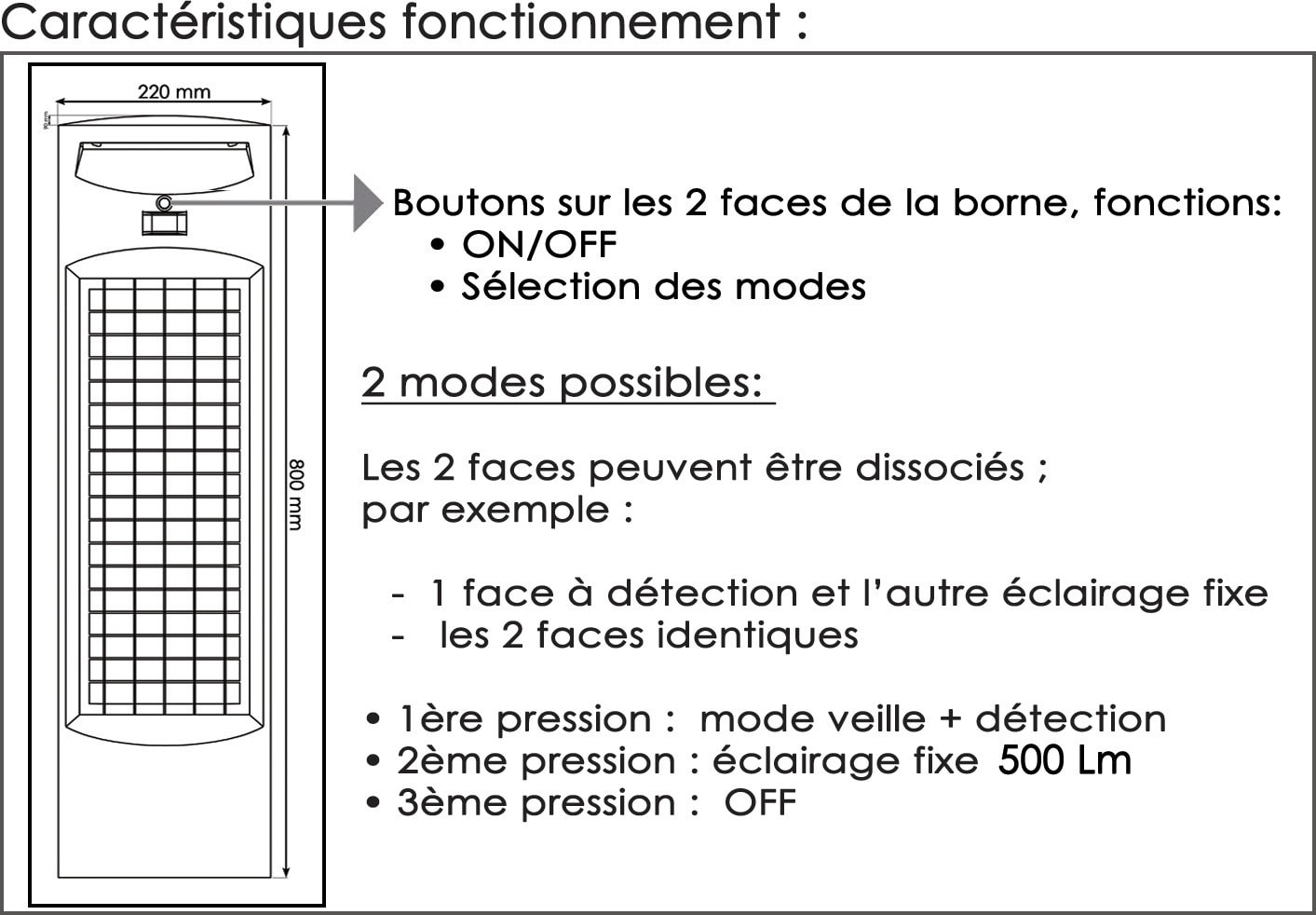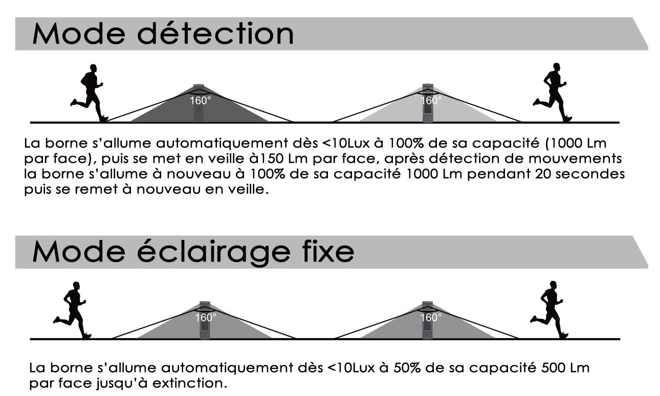 Borne solaire double face à détection