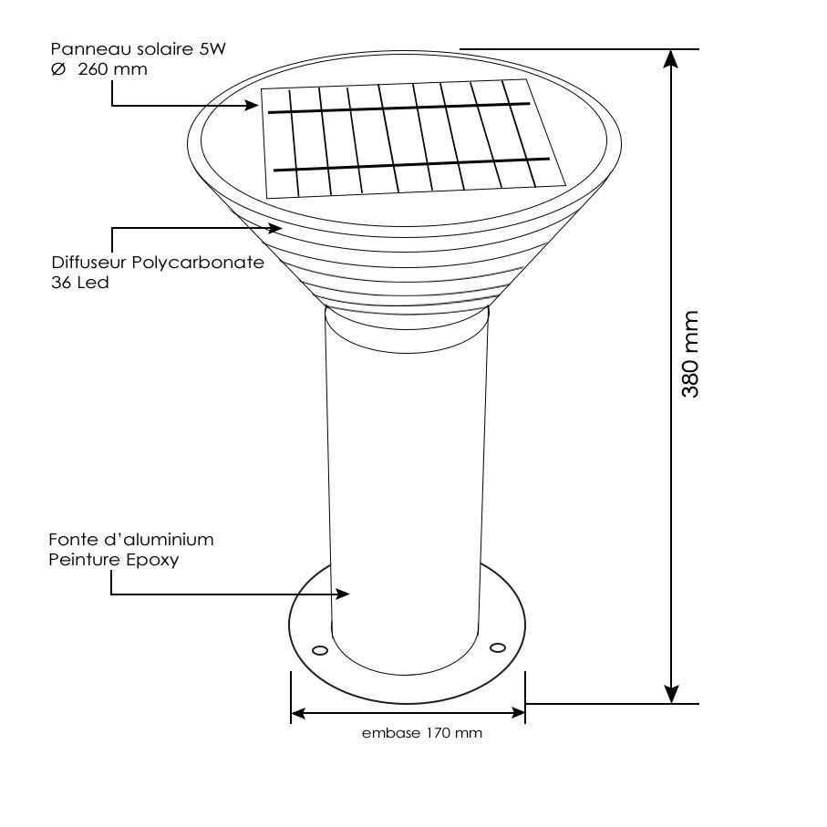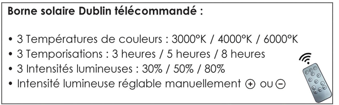 BF LIGHT - Borne solaire Dublin télécommandé 3CCT 3000°K /4000°K/6000°K - BF-SBL4