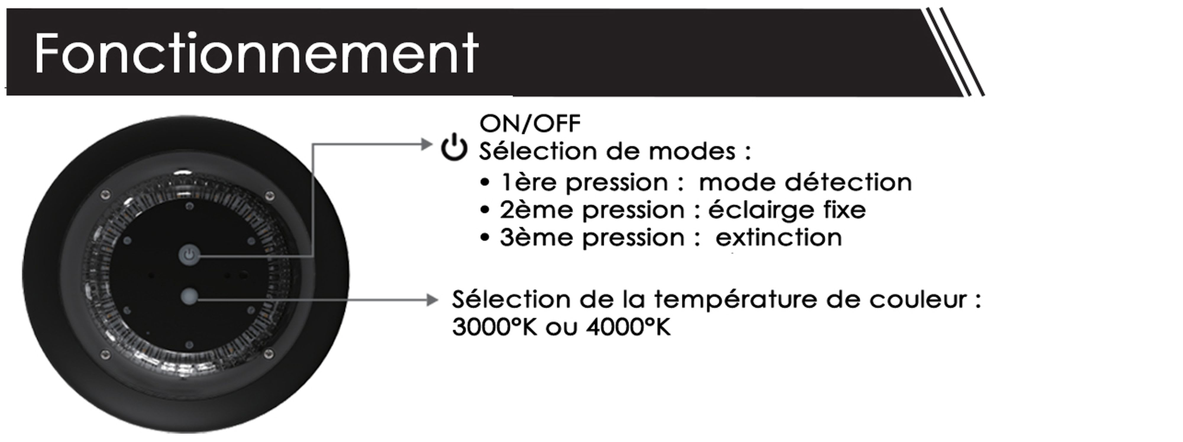 Borne solaire Lily - 3000°K+4000°K - Faisceau 360° - 2200 Lumens -IP65/IK10 - Panneau solaire 5,8W - Batterie LiFePO4 6000 mAh/3,2V - éclairage fixe ou mode détection HF - Détection 120°/ 8m - ABS/Polycarbonate/Anti-UV